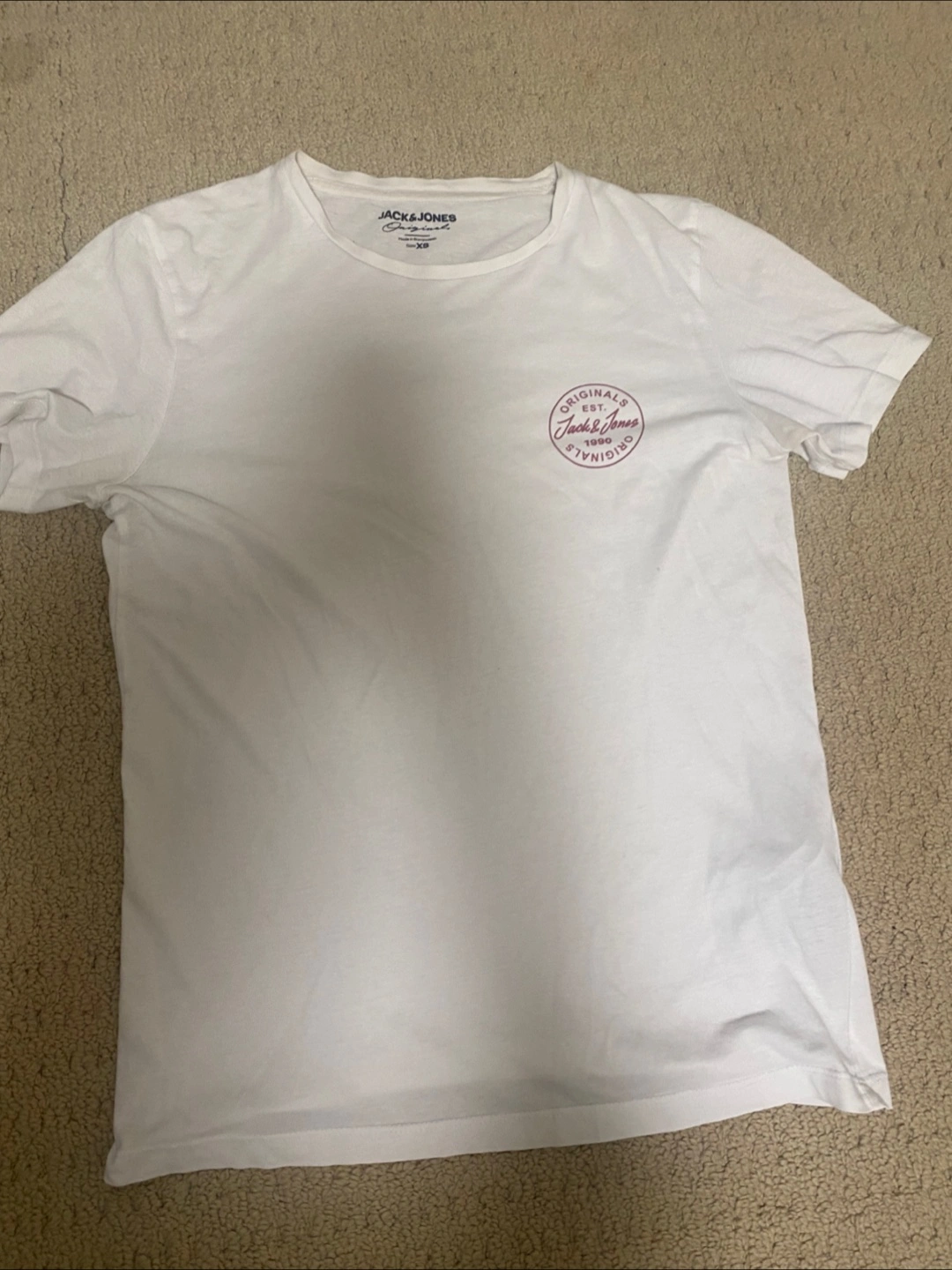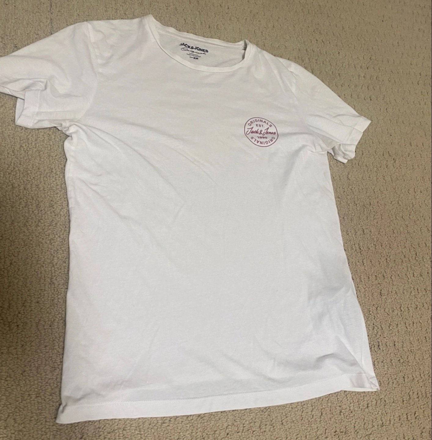 Selling a Jack & Jones white t-shirt in size XS. Perfect for everyday wear! Some slight staining under armpits as shown in pictures. Not noticeable when wearing.