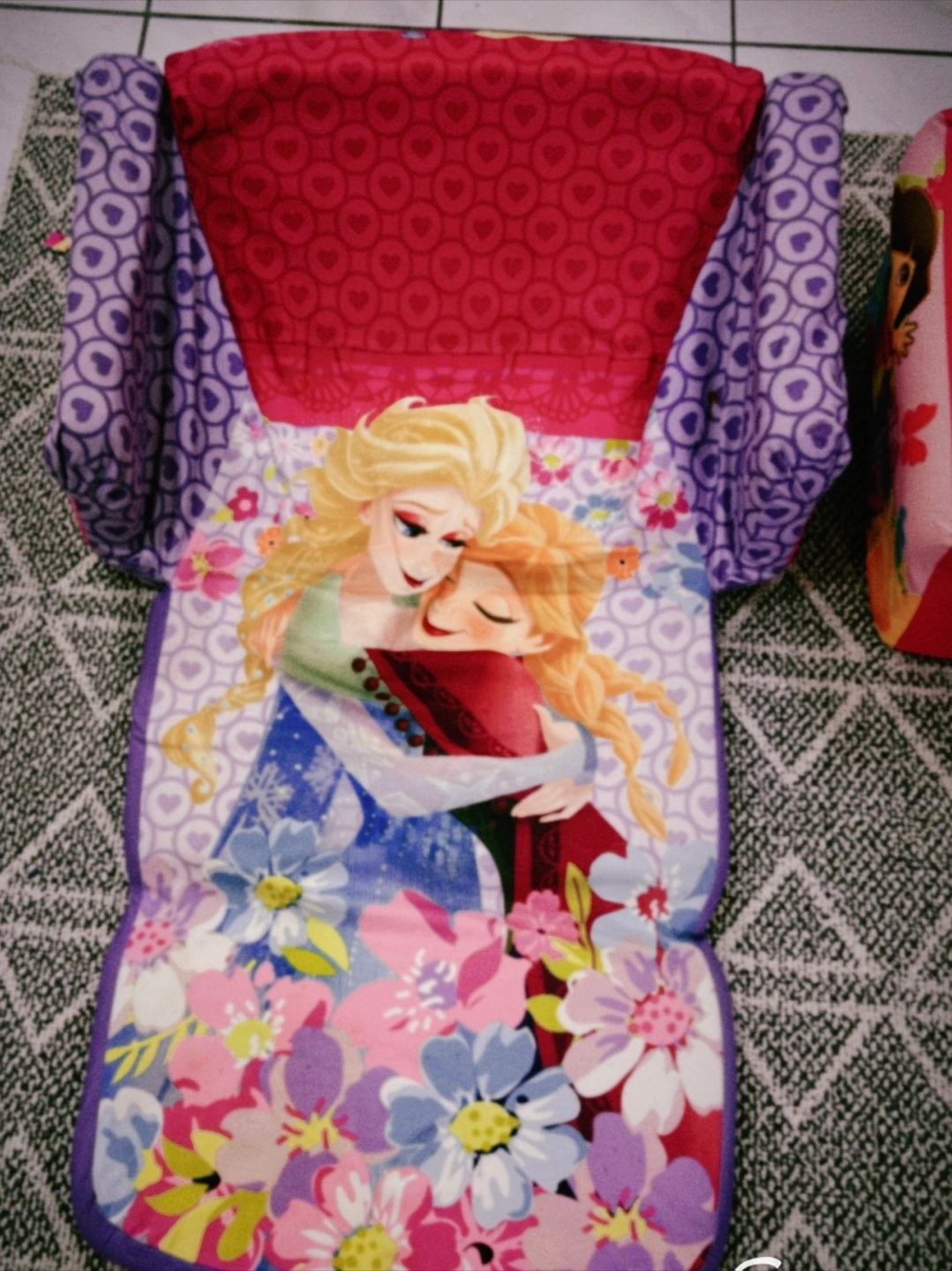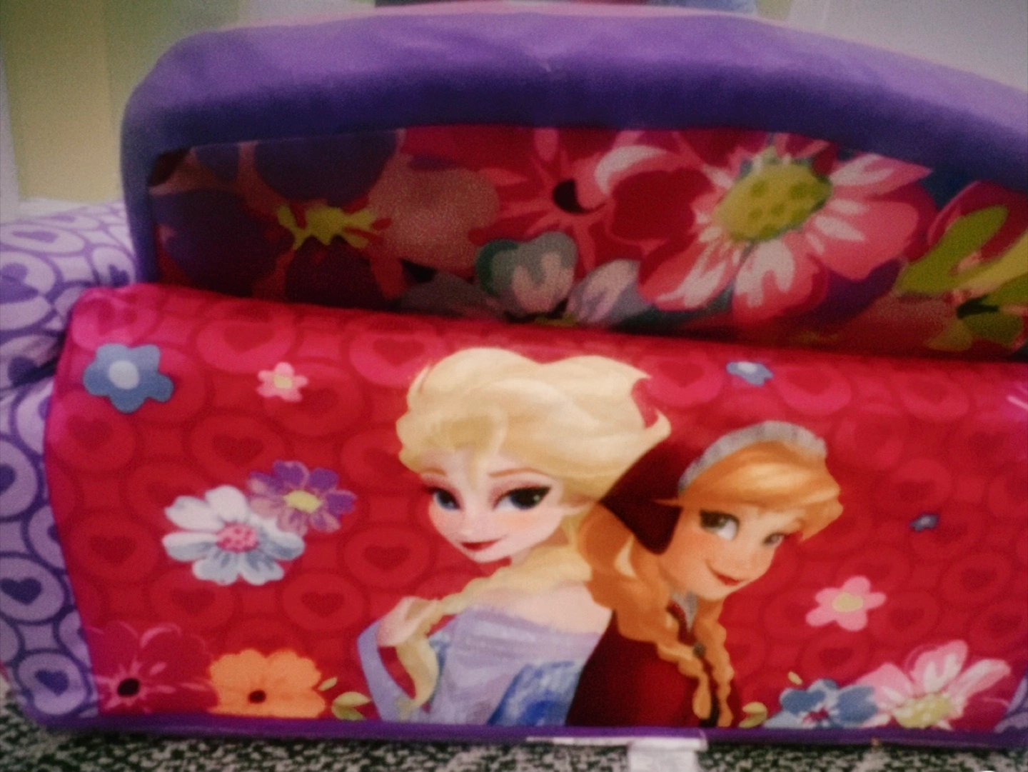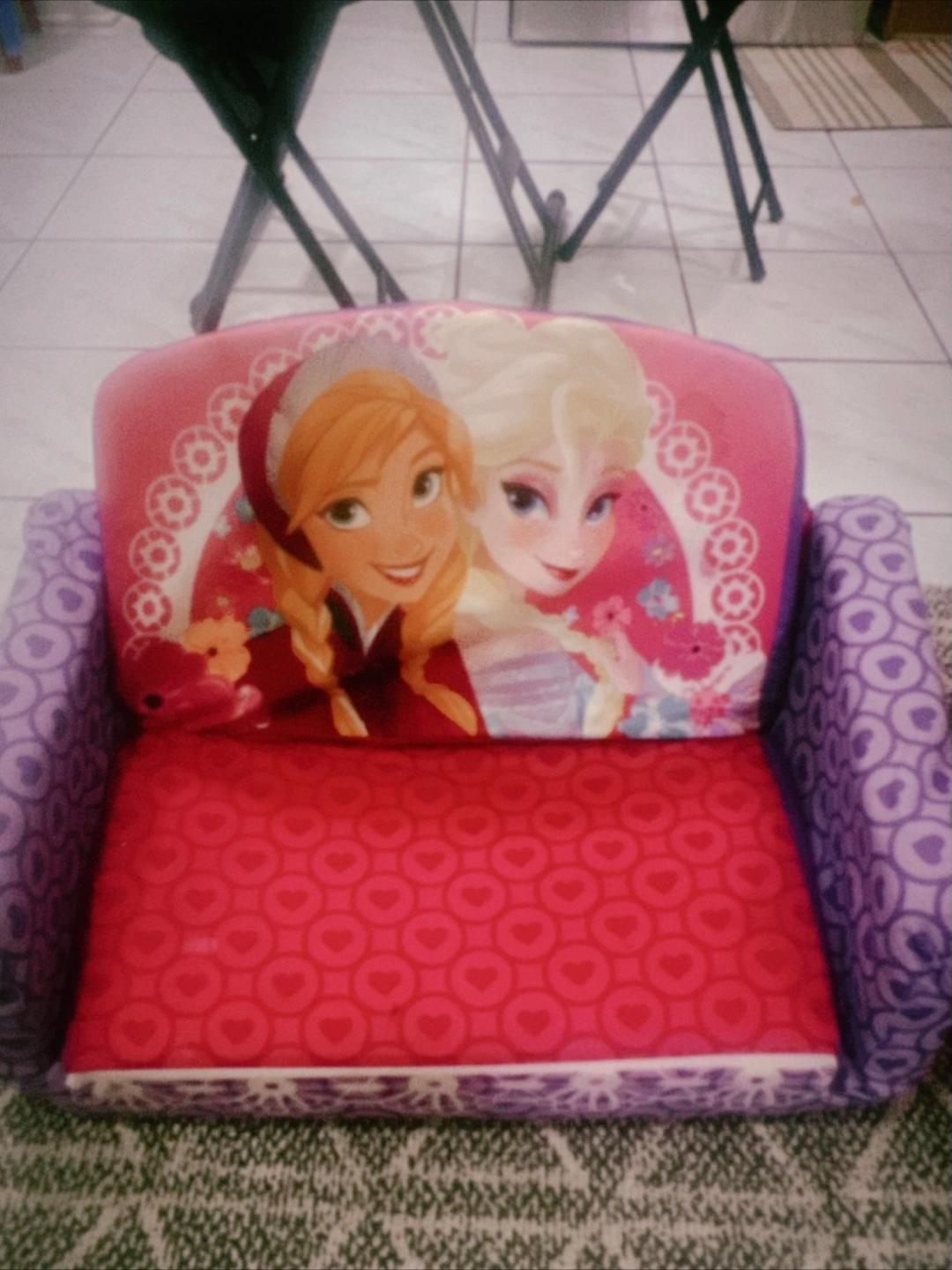 This Disney Frozen flip-open sofa is perfect for kids! It's a cute and comfy couch that easily flips open into a lounger. The sofa features Anna and Elsa. Great for a playroom or bedroom!