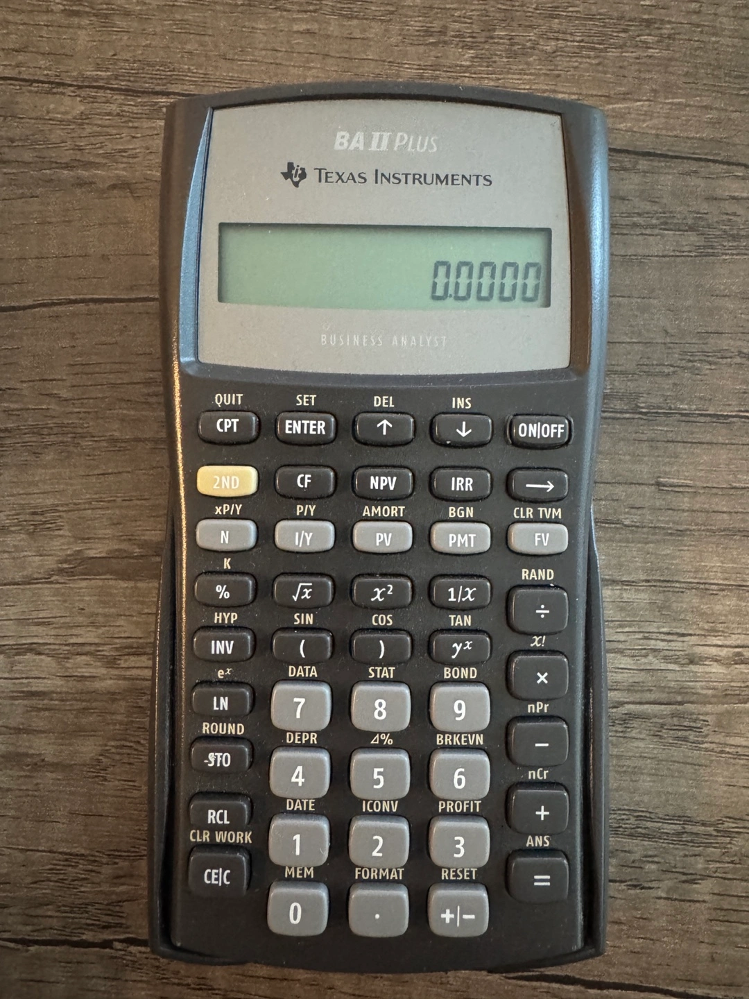 Selling a Texas Instruments BA II Plus business analyst calculator. It's in great shape and ready to help you with your financial calculations!