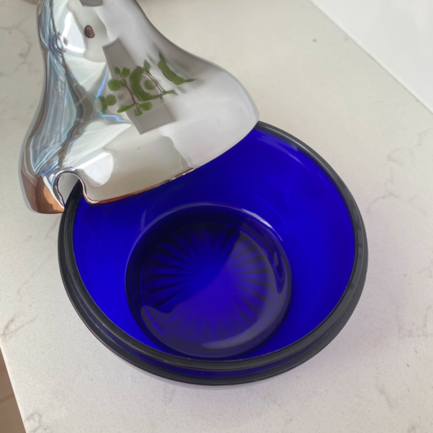 Silver Chrome Pear & Blue Glass Trinket Dish