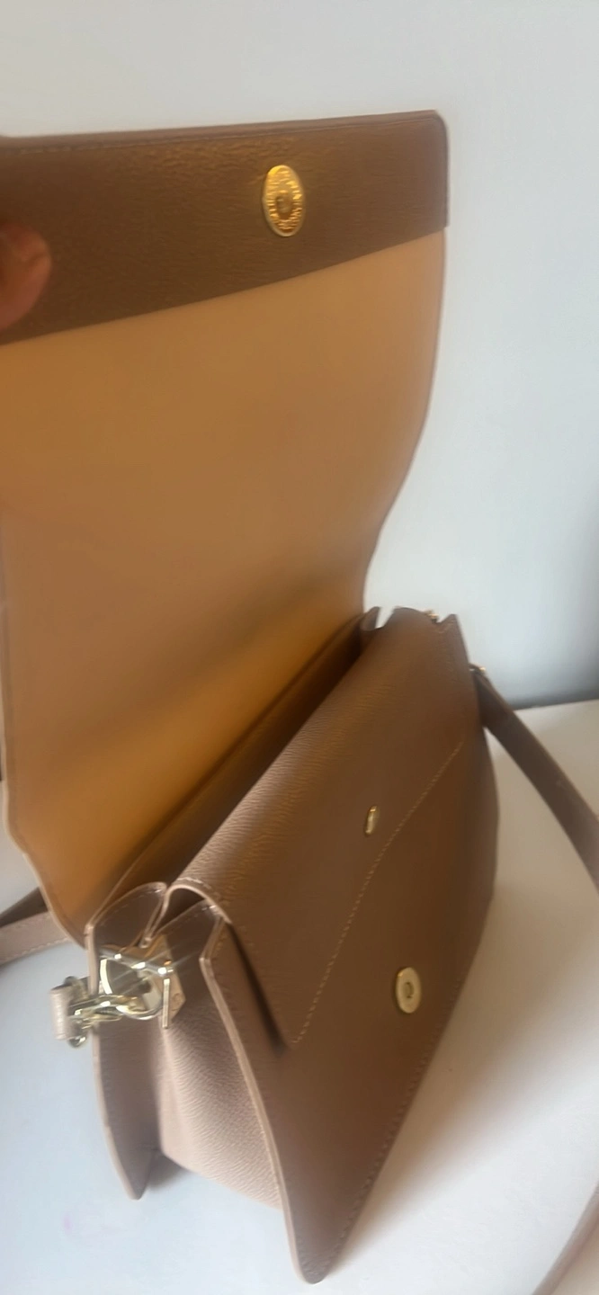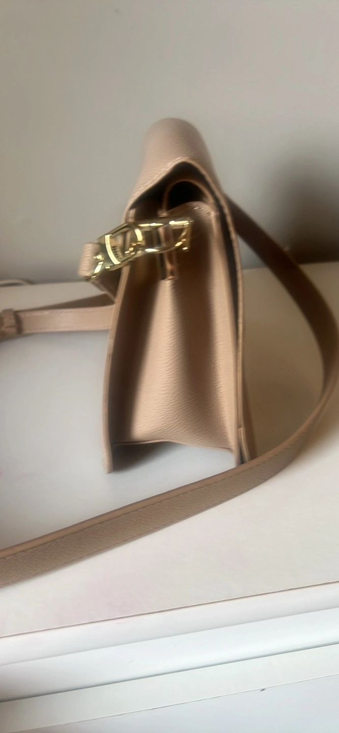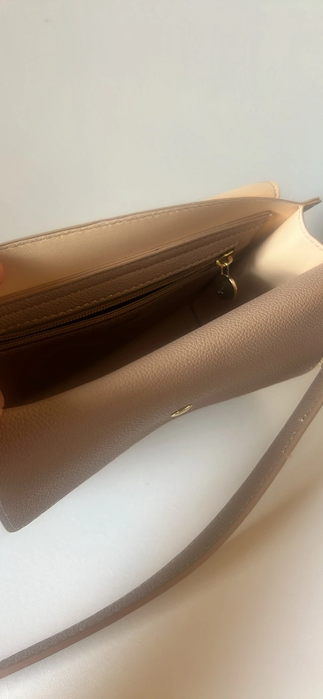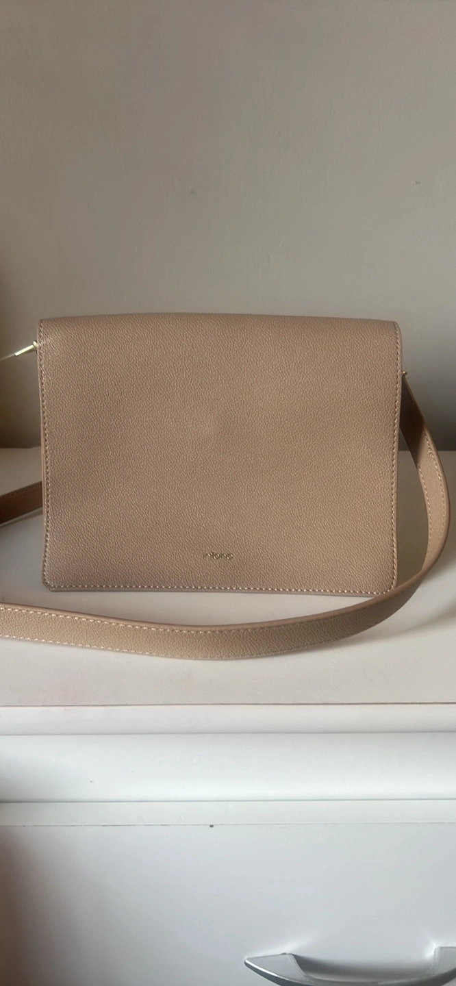 Selling a Vegan crossbody bag in beige. It's in great condition and perfect for everyday use! The size is just right for carrying your essentials. It's a stylish and practical accessory.