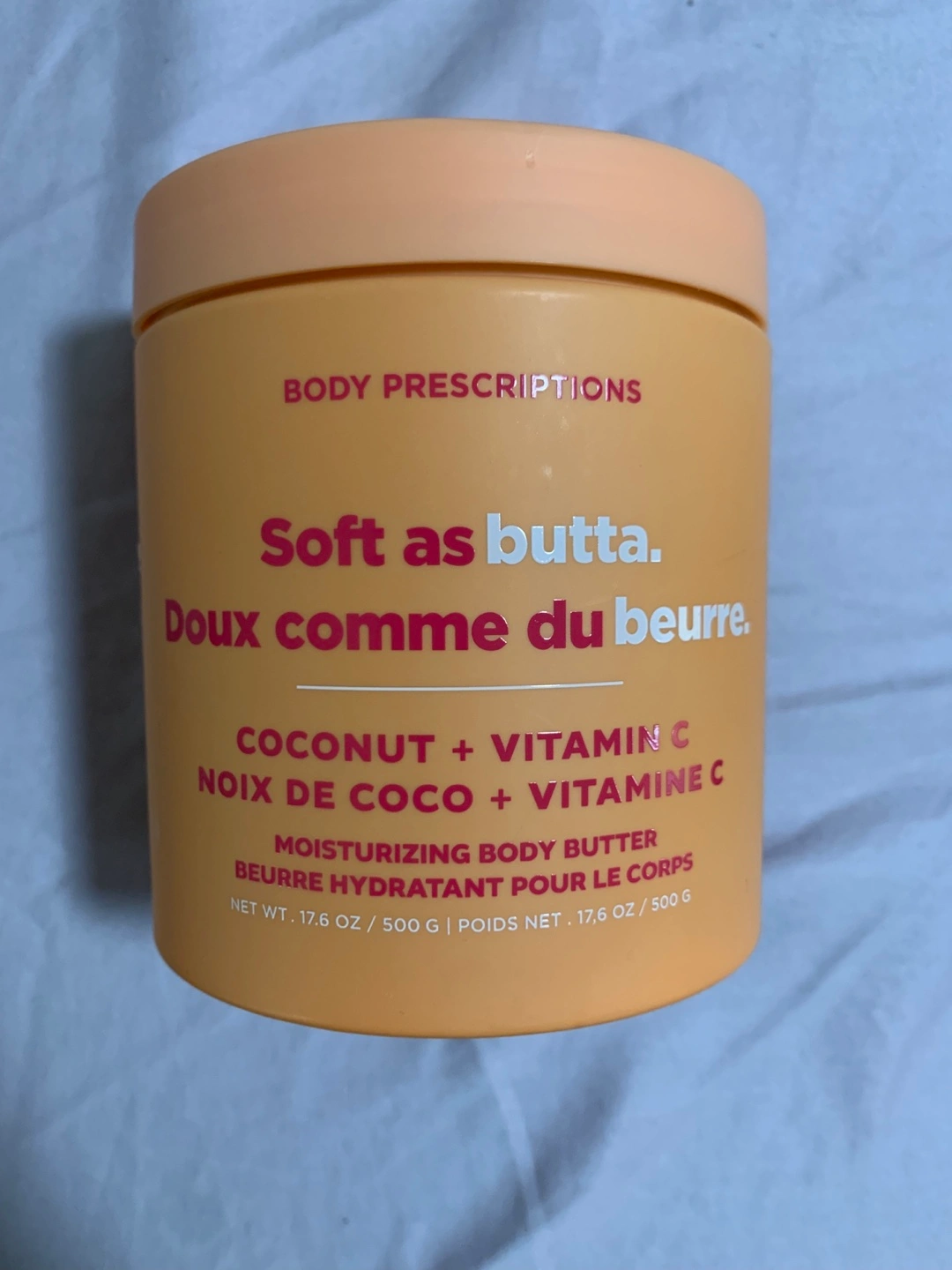 Treat your skin to some TLC with this Body Prescriptions Moisturizing Body Butter! It's infused with coconut and Vitamin C, leaving your skin feeling soft as butta. The jar contains 17.6 oz / 500g of product