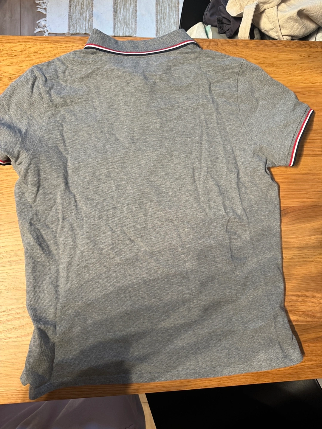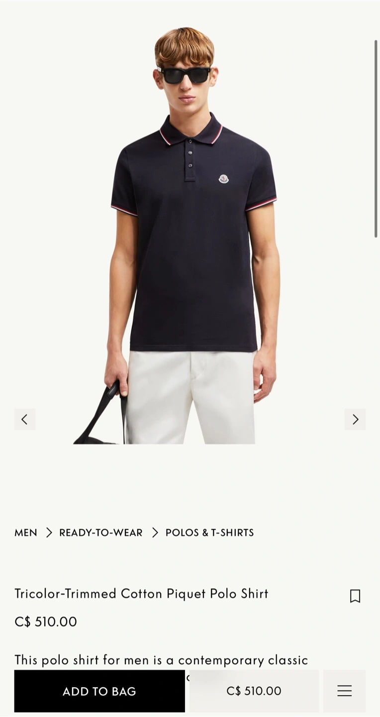 Originally C$510 + tax. Has the RFID & QR scanner to verify authenticity. Gray Moncler polo, fits men’s M/L