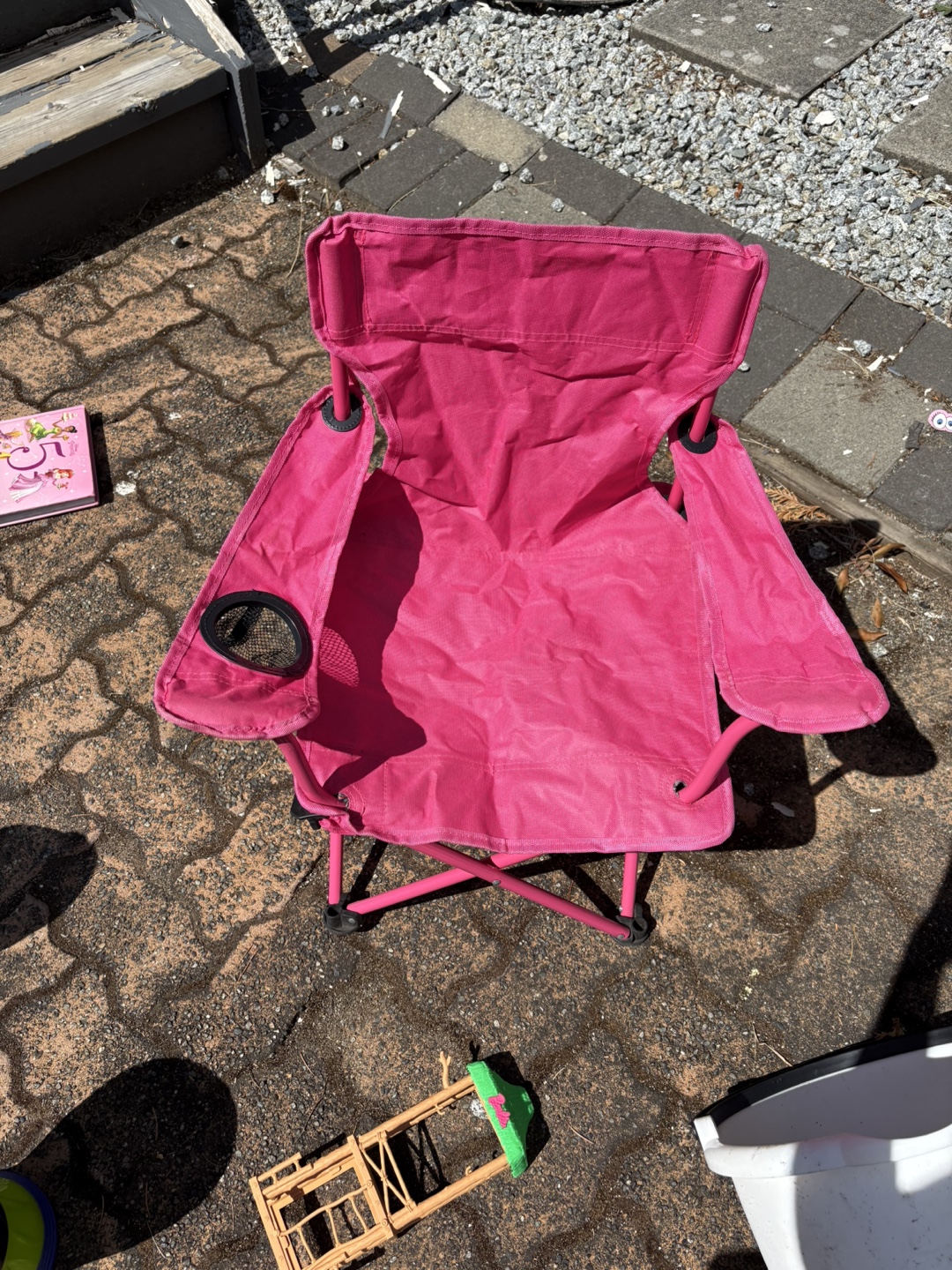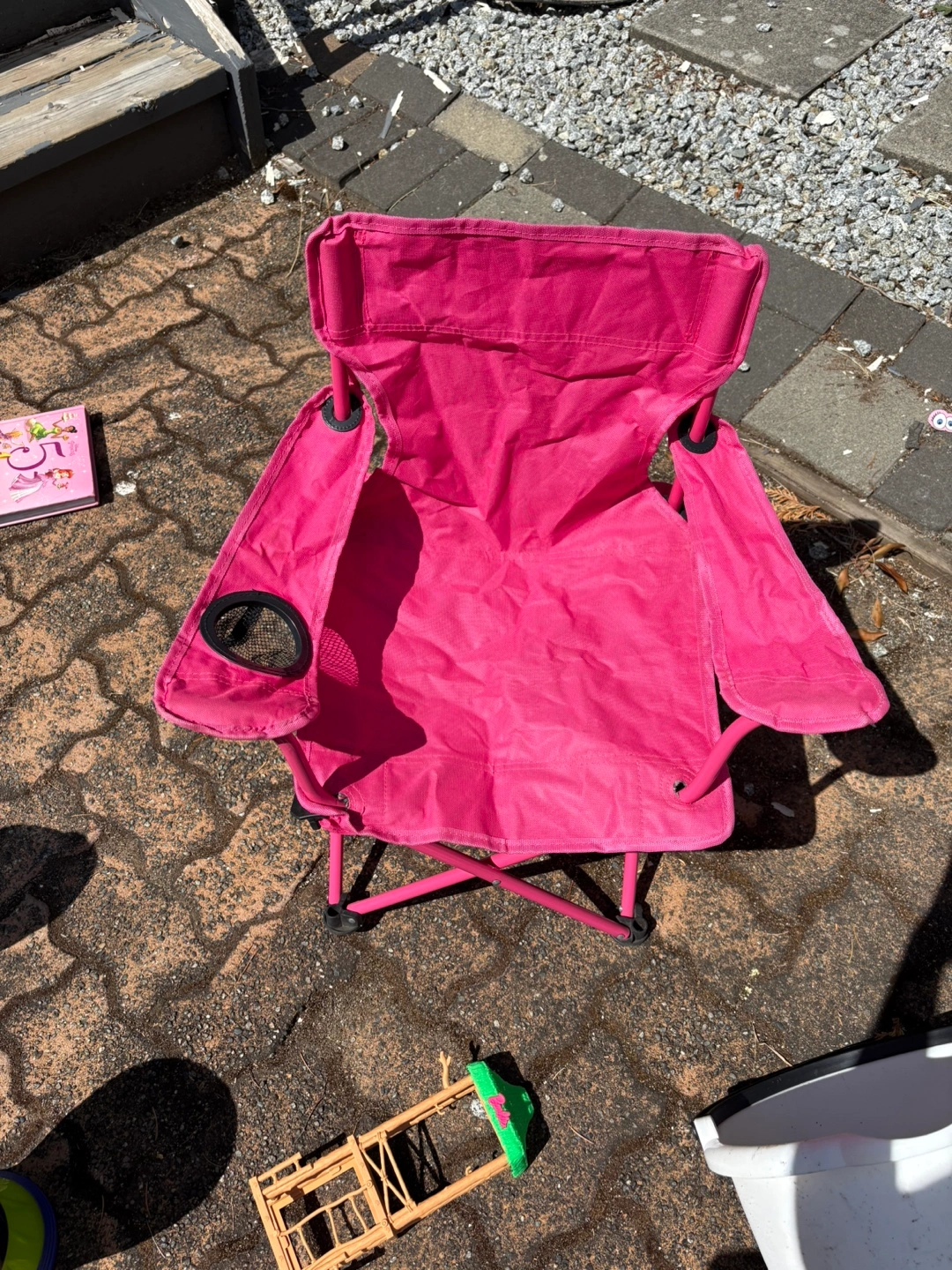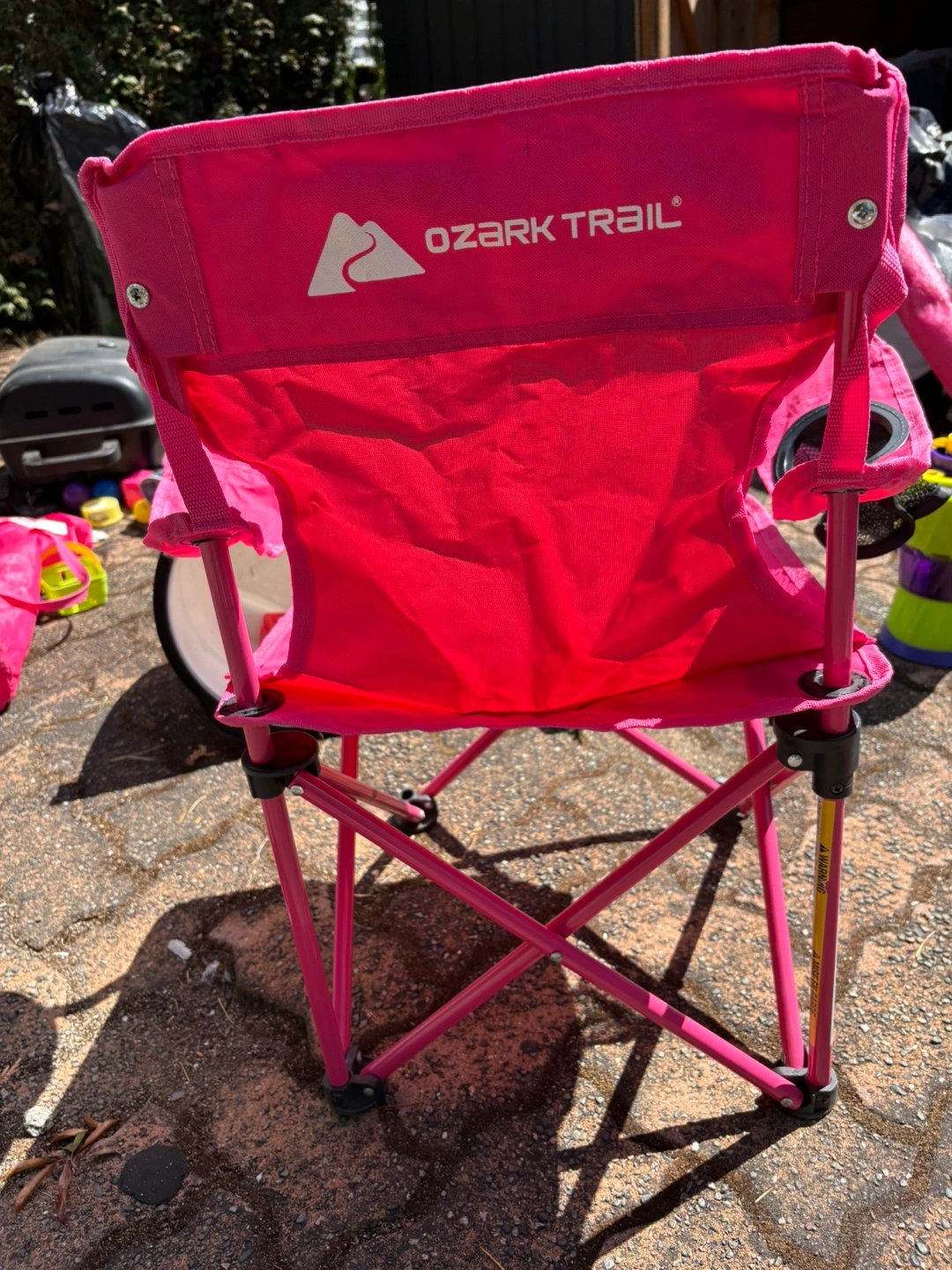 Selling a cute pink Ozark Trail kids' arm chair! It's perfect for camping, picnics, or just hanging out in the backyard. Comes with its carrying bag for easy transport and storage