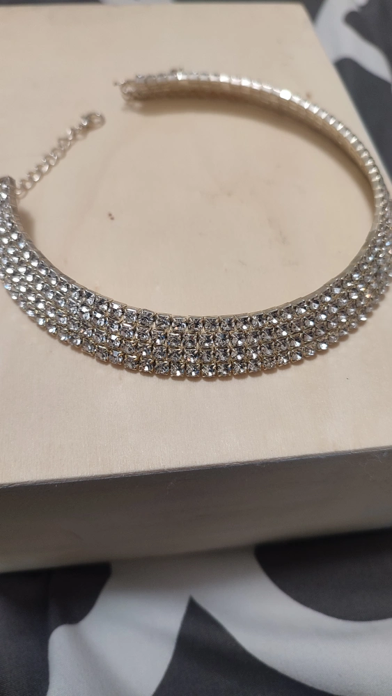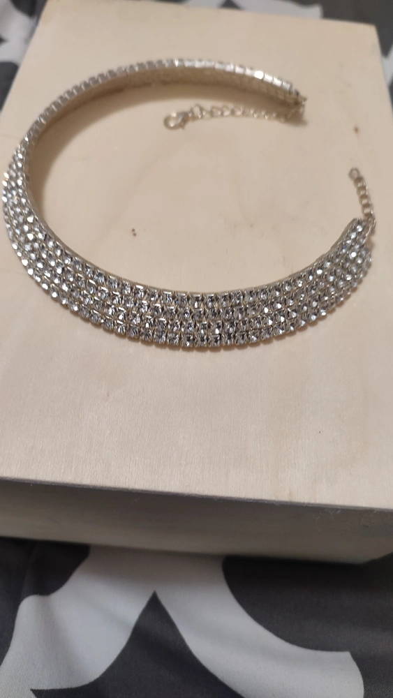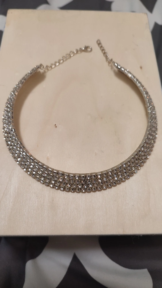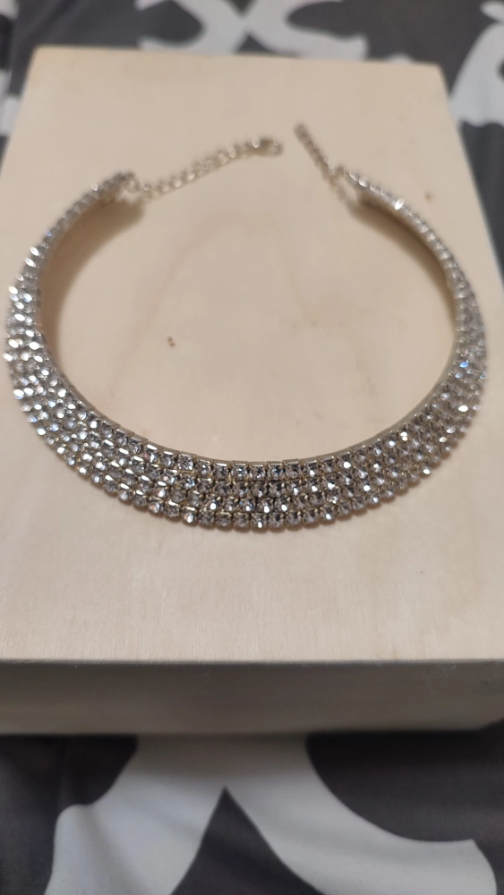 Selling a beautiful silver-tone choker necklace! It features three rows of sparkling rhinestones. It's new and in great condition and would be a lovely addition to any outfit