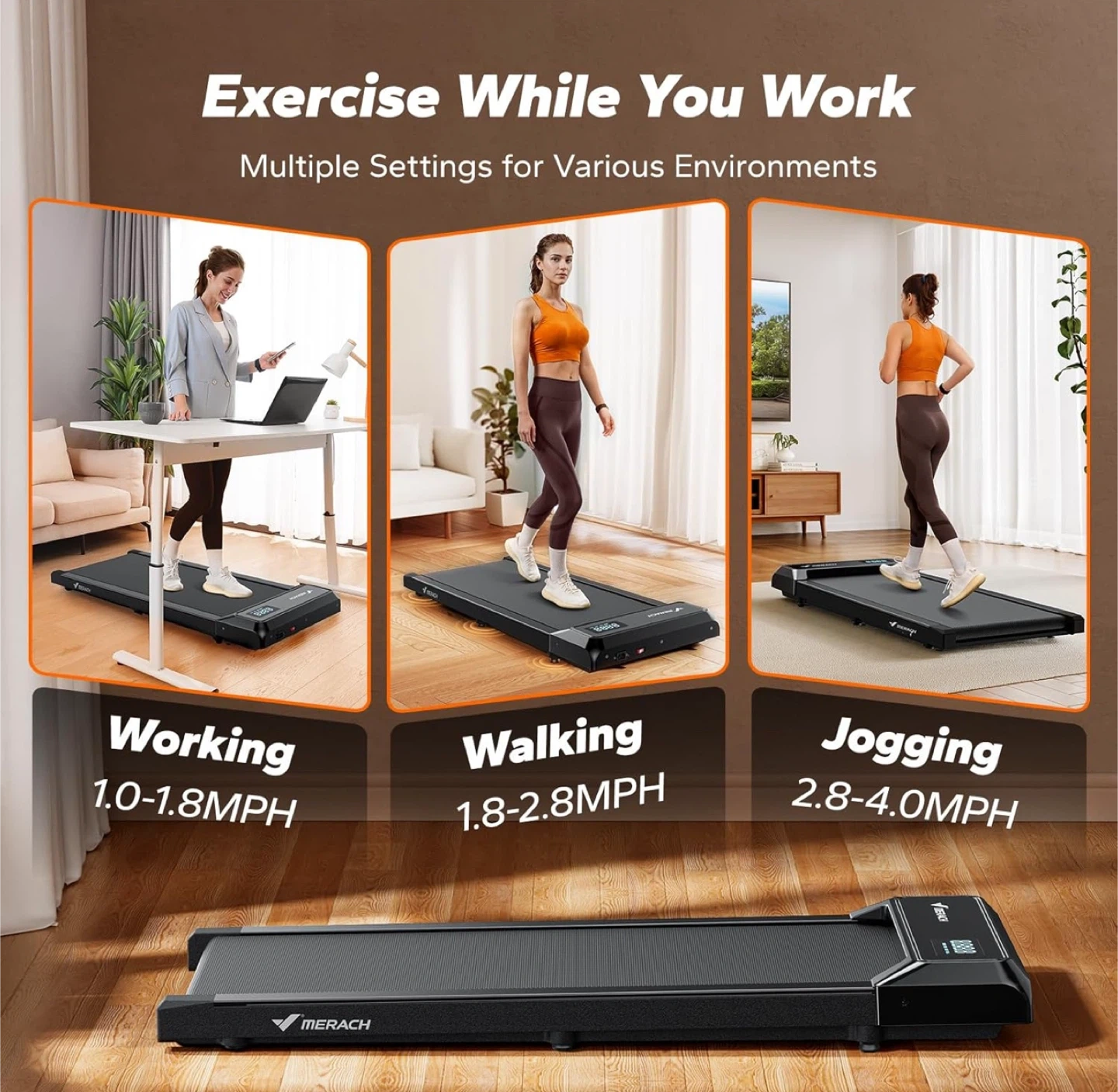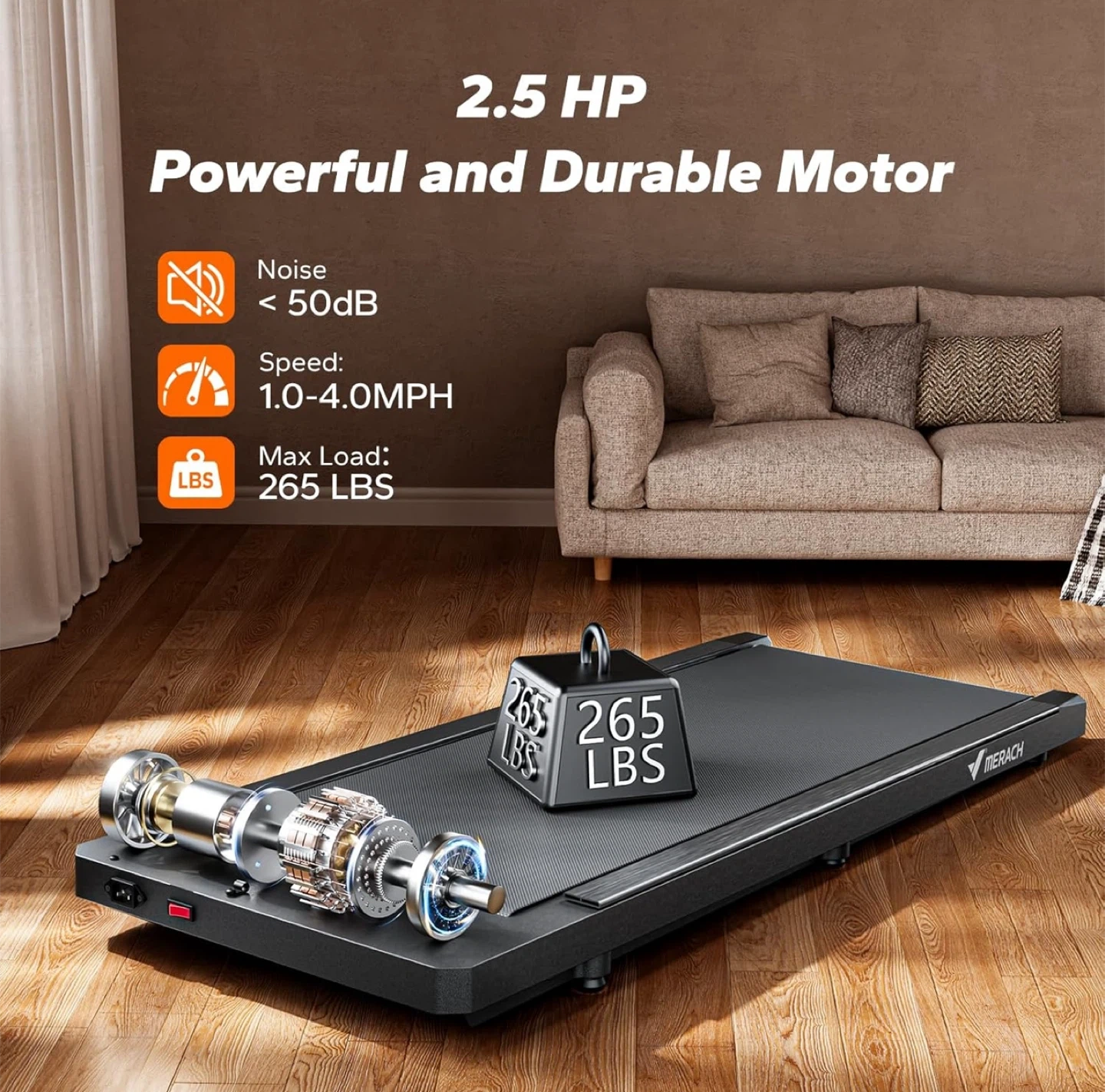 306Under Desk Treadmill, Walking Pad Portable Mini Treadmills for Home Seamless One-Piece Molding Design 265LBS Walkpad Remote Control App Control LED Display Powerful and Ultra-Quiet Motor 2.5HP commercial-grade motor Smooth speeds from 1.0-4.0MPH for walking or jogging Operates under 50dB noise level Ideal for home offices or apartments Aircraft-grade alloy frame provides 265LBS capacity while weighing only 28lbs NOTE: New in box, not used