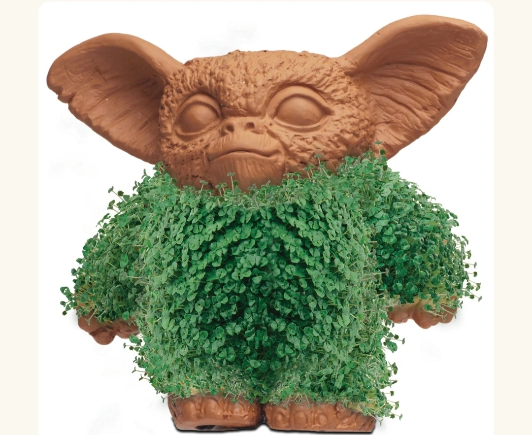 Selling a gently used Chia Pet in the shape of a Gizmo! first soak the planter in water, then prepare the chia seeds by mixing them with water until they form a sticky paste. Spread the mixture evenly over the planter, let it dry for a couple of days, and then water it regularly to watch Gizmo sprout. it takes a couple of weeks to sprout. (some chia seeds included)