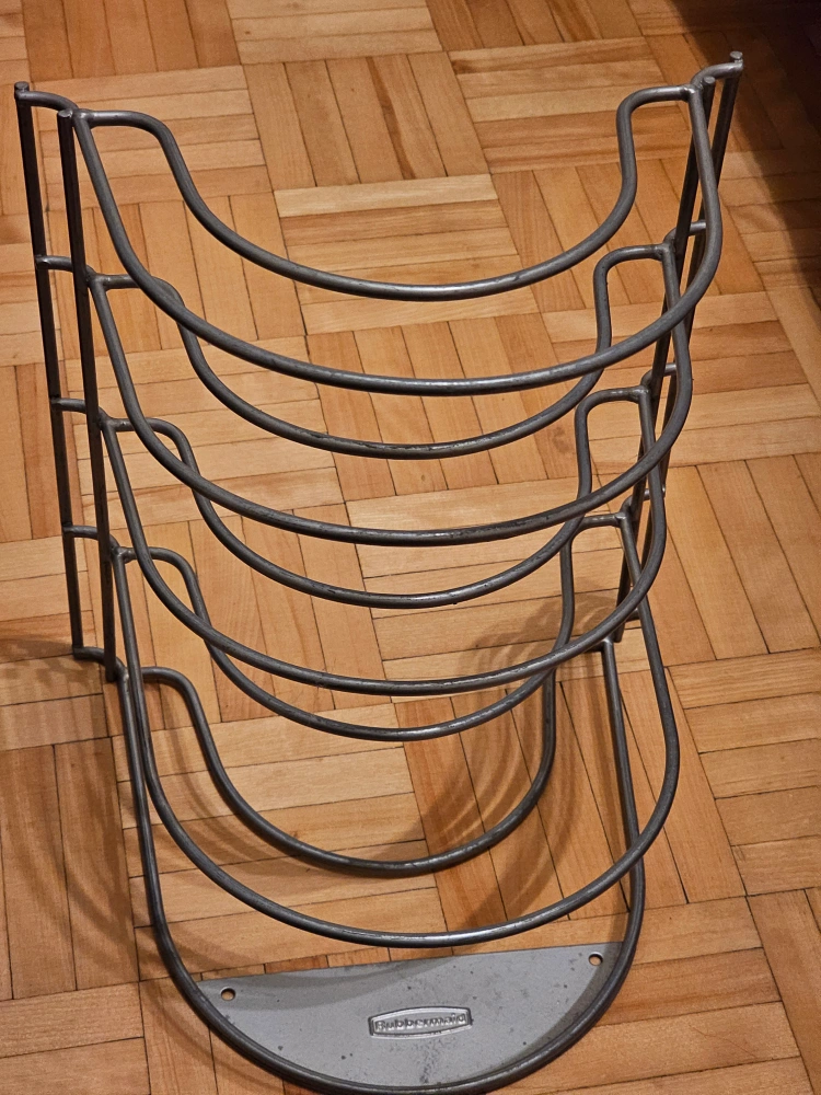 We are selling a Rubbermaid pan organizer rack. It's a handy way to keep your plates neatly stored and easily accessible. Really good for keeping your kitchen organized. Used in good condition.