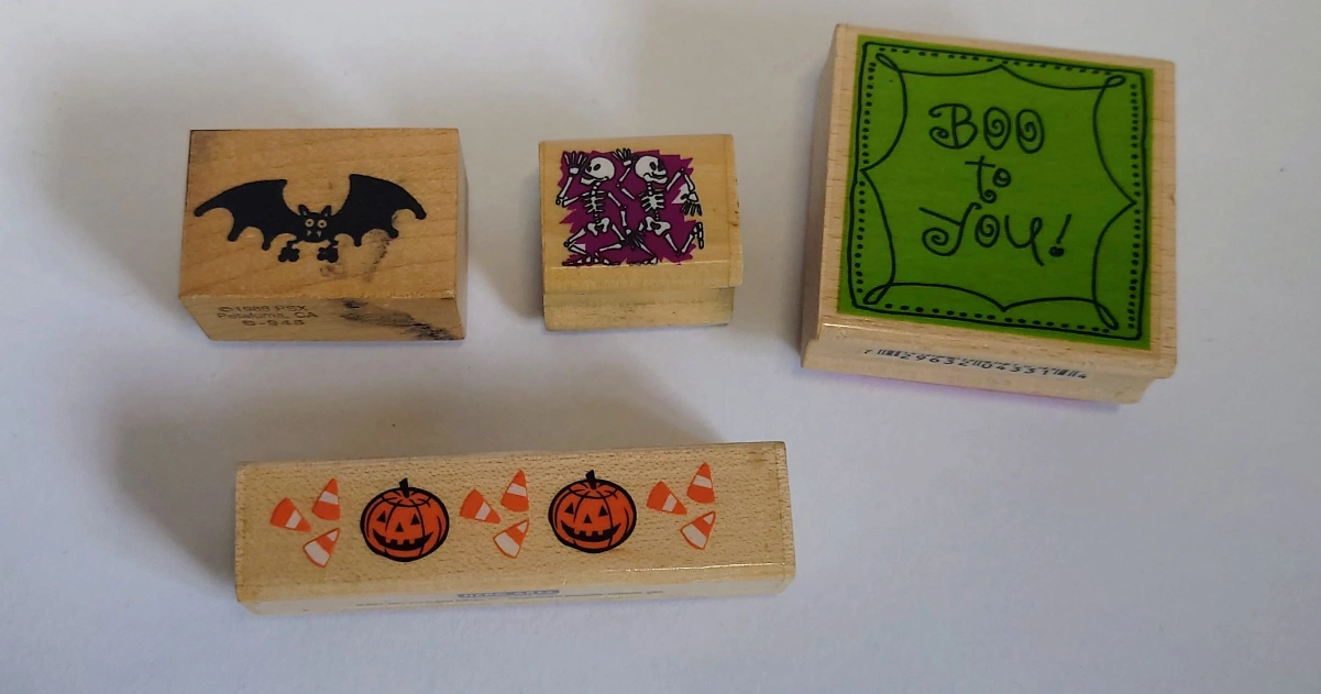 Selling as a set. Lot of 4 medium- to small Halloween-themed rubber stamps.