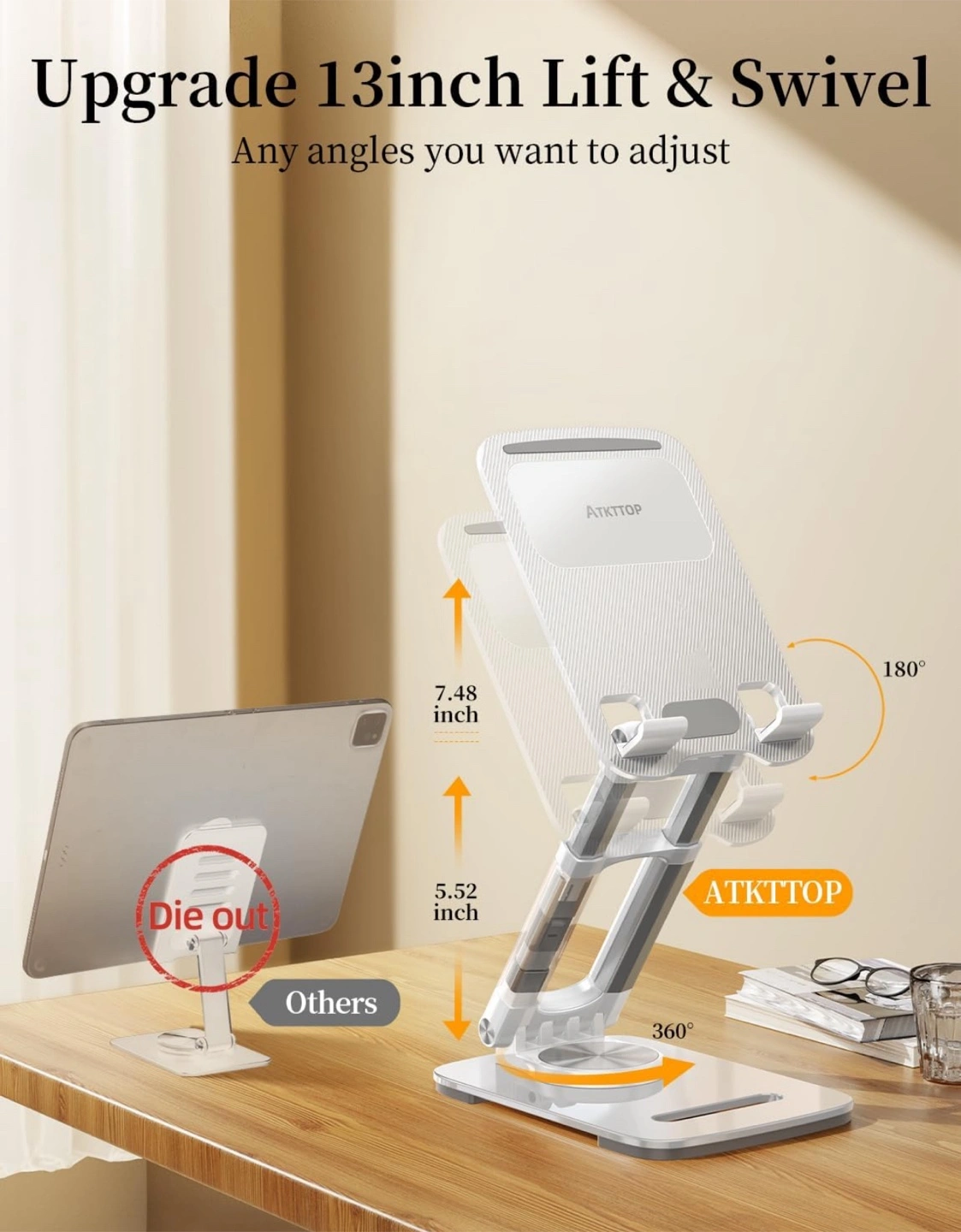 * Address - MEET HERE Starbucks 8010 Bathurst St Vaughan, ON L4J 0B8 - Great condition - Messages asking if it’s “free” won’t be responded to • Adjustability: Features a locking mechanism with adjustable angles and a height adjustment range of 5.5~13 inches. • Durability: Constructed with military-grade carbon steel, capable of supporting up to 120 lbs. • Rotation: Offers 360-degree rotation with AR damping for versatile viewing angles. • Device Compatibility: Compatible with tablets ranging from 4.7 inches to 15.6 inches. • Stability: Features a wider base, thicker nano anti-slip pads, and dual-rod construction for enhanced stability. • Portability: Fully foldable design allows for easy storage and transport.