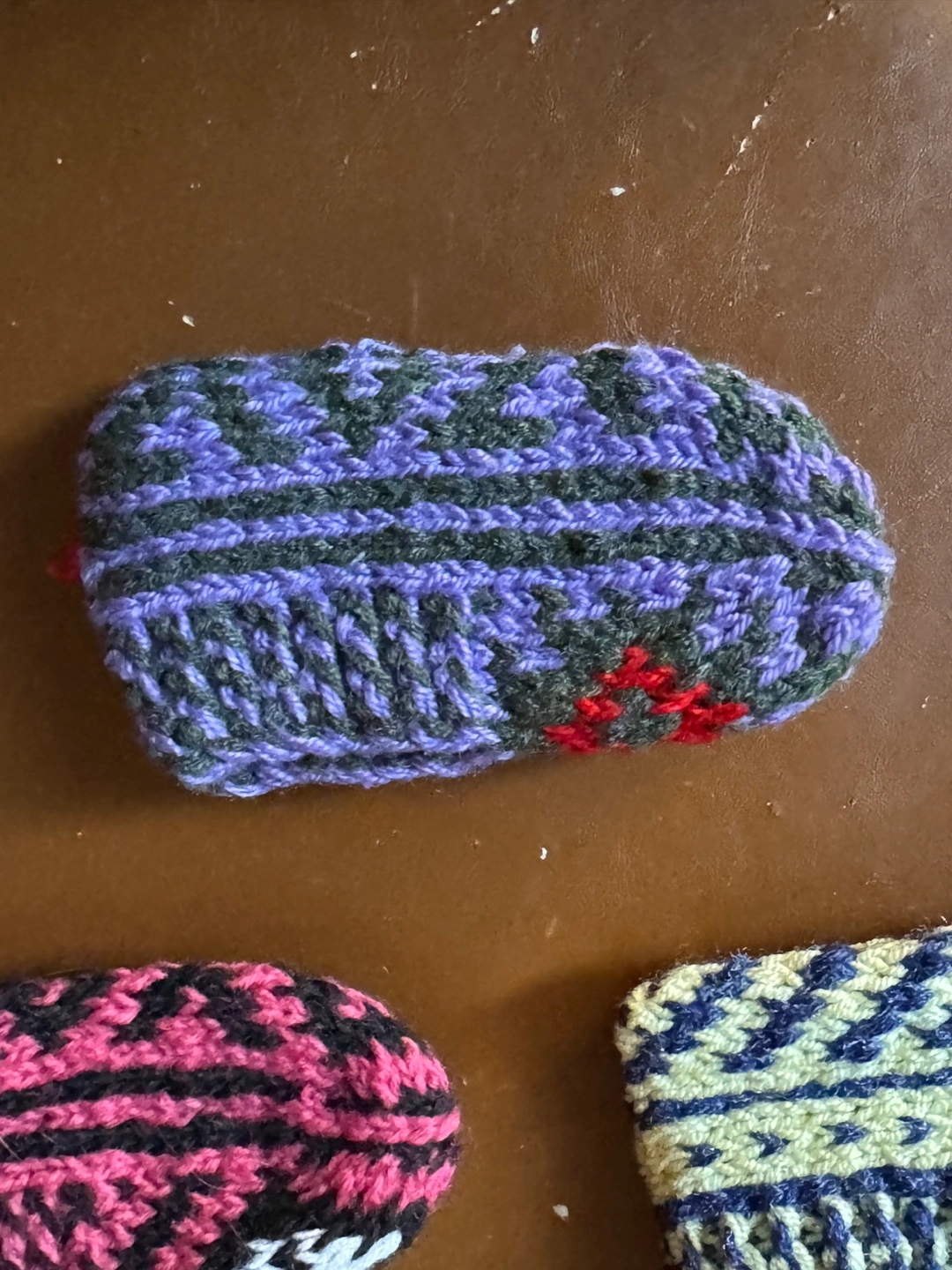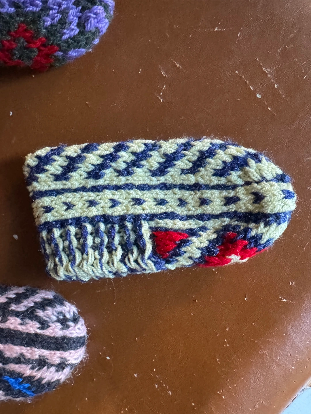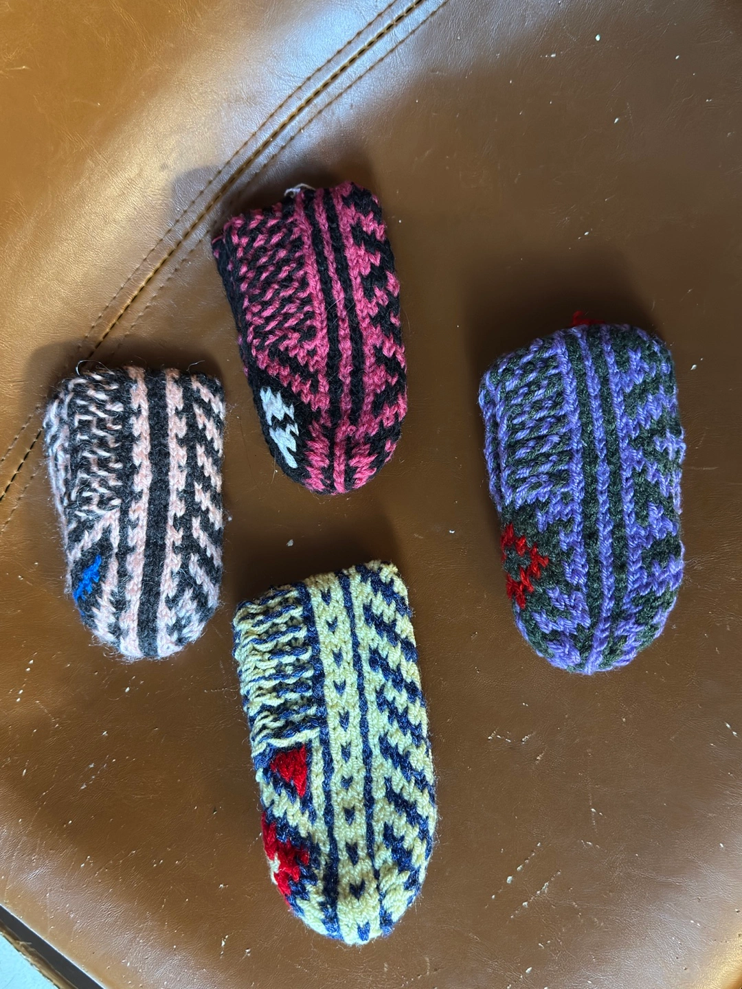 1months- 2 years old —-I'm selling these cozy, hand-knitted wool slippers . They come in a variety of colours and patterns!