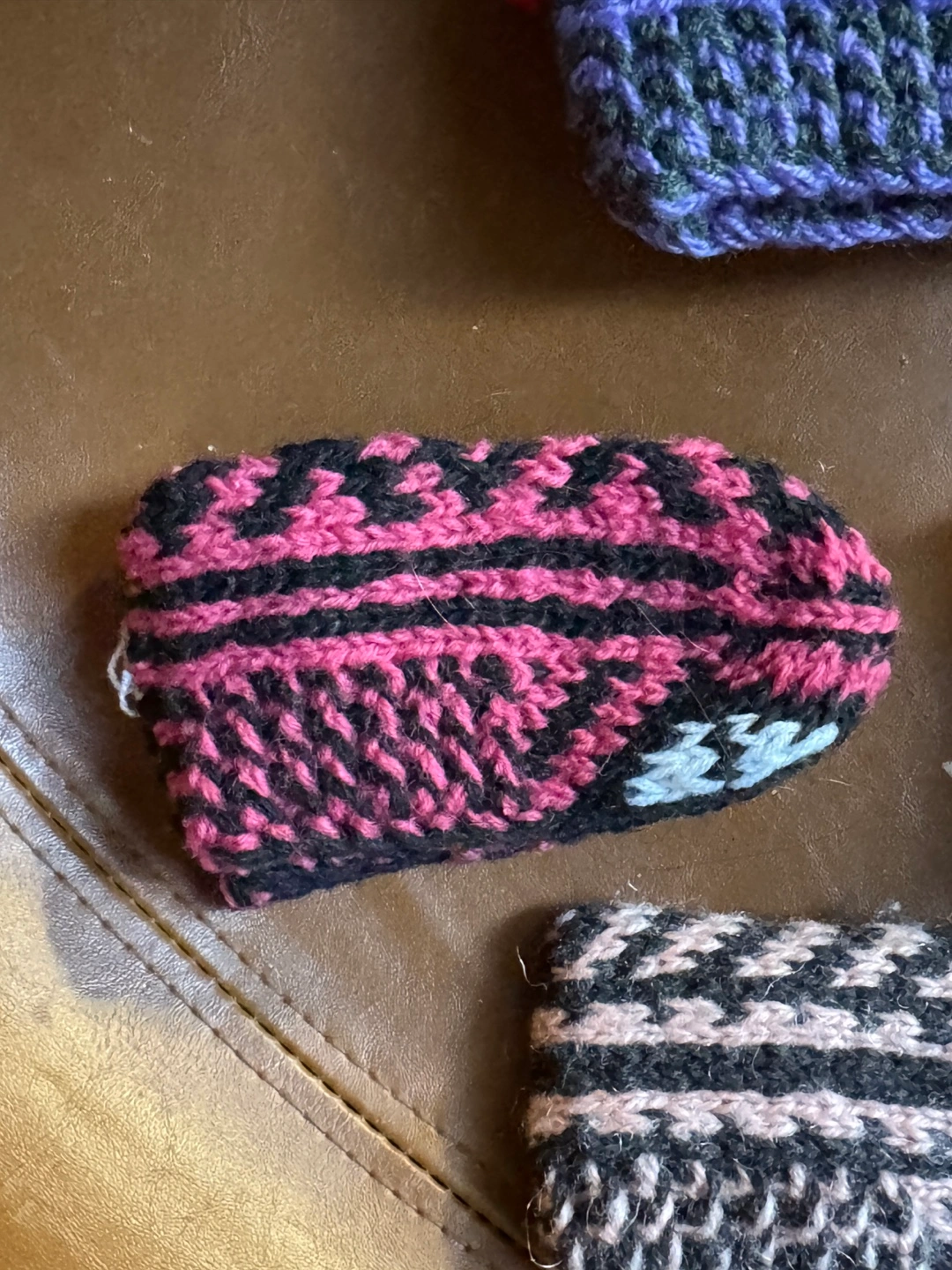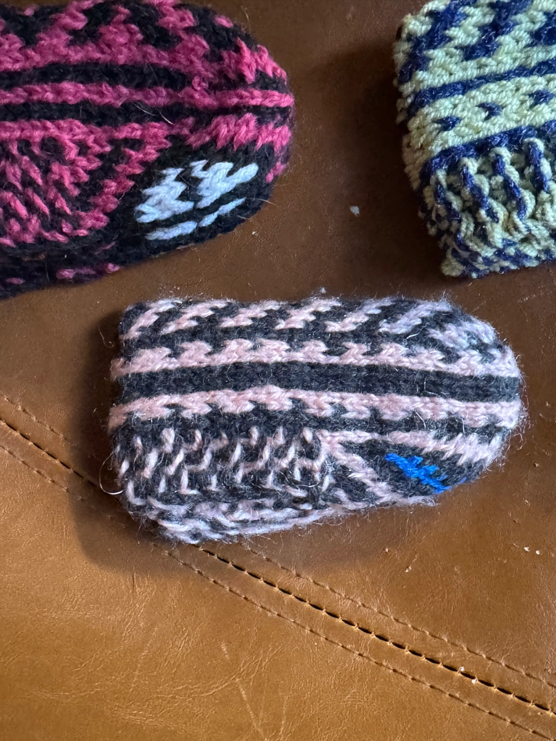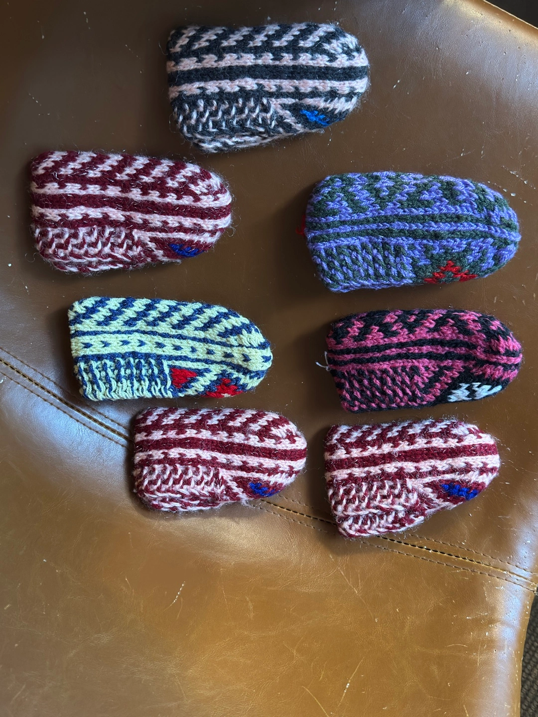 1months- 2 years old —-I'm selling these cozy, hand-knitted wool slippers . They come in a variety of colours and patterns!