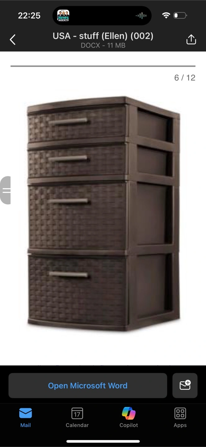 Two small brown plastic storage units with four drawers each. Good for organizing various items around the house - we kept ours in our closet. The drawers have a woven texture, adding a nice touch to the overall design. I think this is the original product: https://www.sterilite.com/product-page.html?product=26226P02