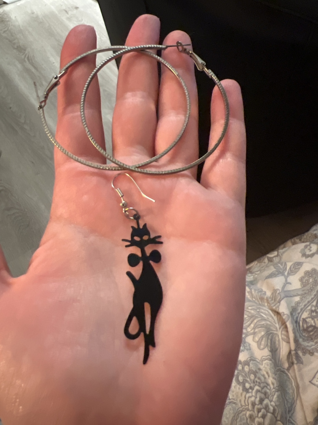 1 / 11 / 1Buy & SellEarrings: Hoop & Black Cat DangleEarrings: Hoop & Black Cat DangleFreeSelling a pair of earrings. One is a silver hoop earring and the other is a black cat dangle earringConditionOkayWHERE TO MEETYorkvilleView MapSELLERverifiedAnnaYorkville983121 reviews1 chats·0 favorites·43 viewsSEND CHAT TO SELLERHi Anna! I’m interested in your listing.Hi Anna! I’m interested in your listing.Get the Karrot app to chatSign In to chat