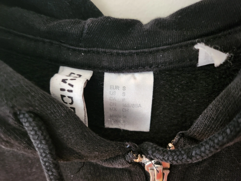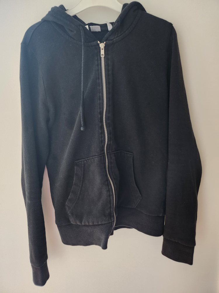 Selling a black zip-up hoodie from H&M's Divided line! It's a size small and in good condition. Perfect for layering or just lounging around