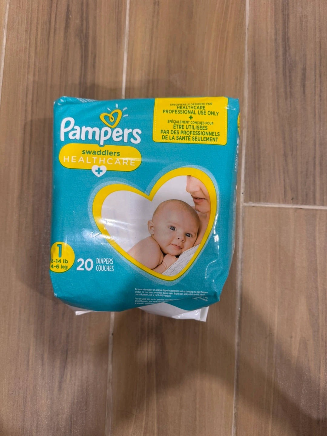 10Selling a pack of Pampers Swaddlers Healthcare diapers. These are size 1, suitable for babies weighing 8-14 lb (4-6 kg). The pack contains 20 diapers.