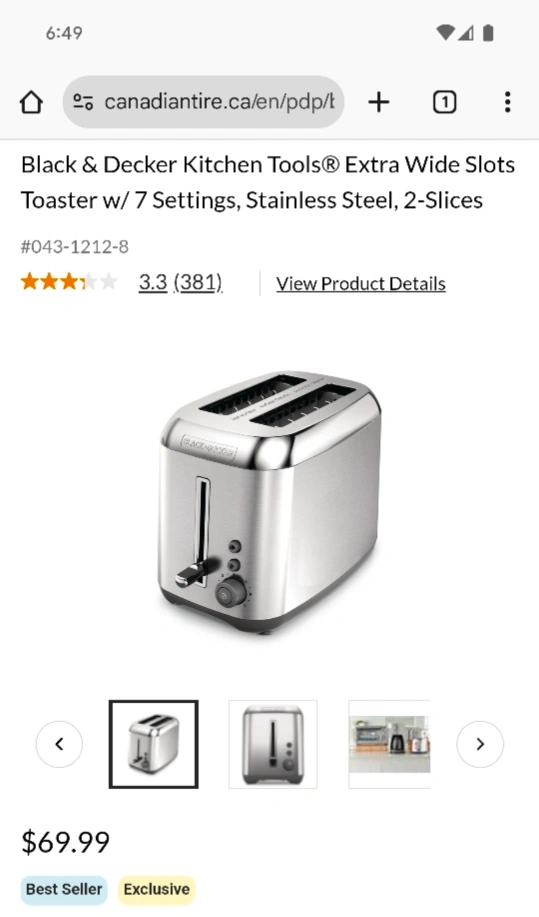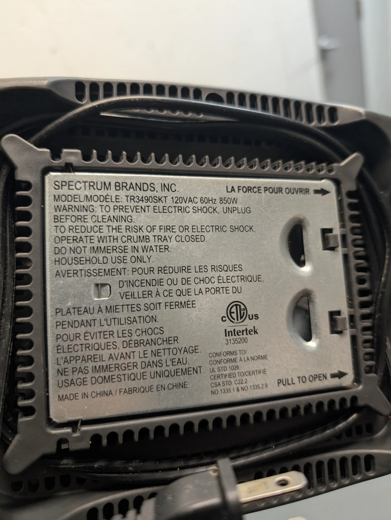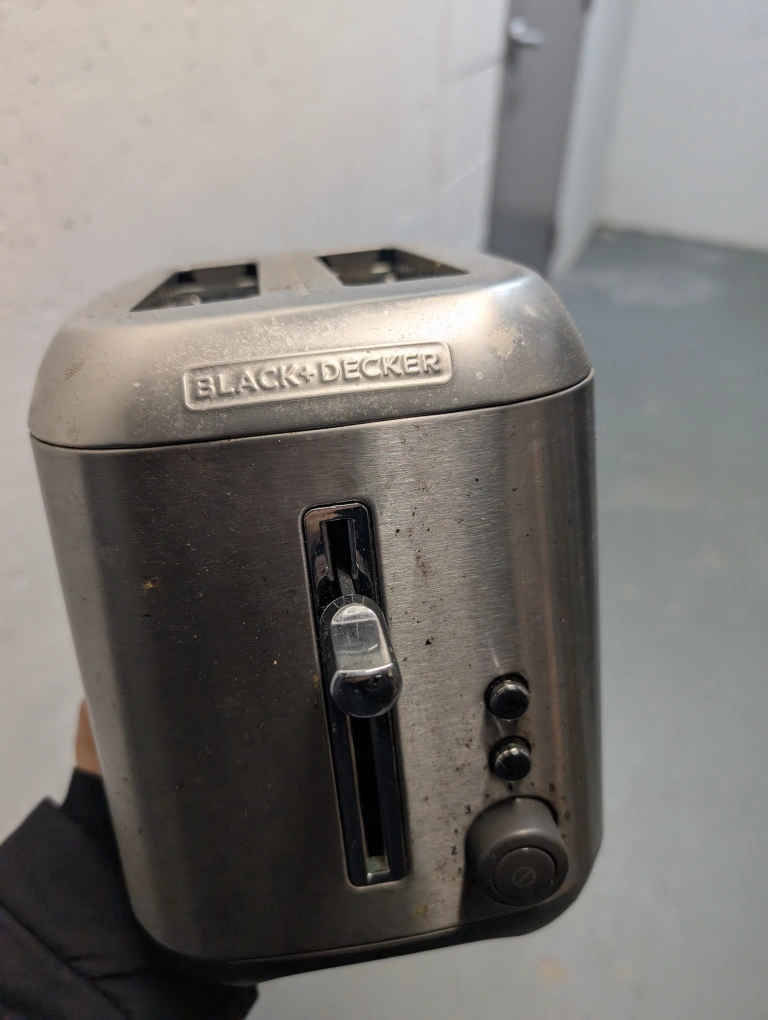 Selling a Black & Decker 2-slice toaster. It has extra wide slots and 7 settings. The model number is TR3490SKT. It's a bit used but still works great! Original price $70. Pick up at 60 John Street @ A&W. Cash only.