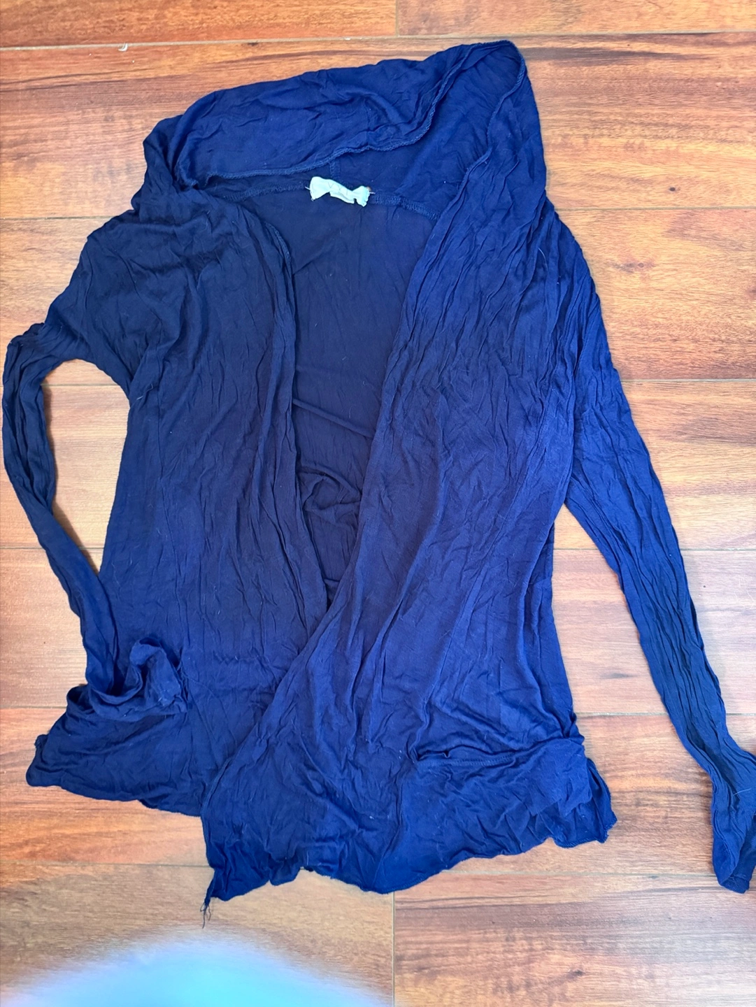 Here's a comfy blue cardigan! It's in great condition and ready for a new home. It's a versatile piece that can be dressed up or down, perfect for layering on those cooler days