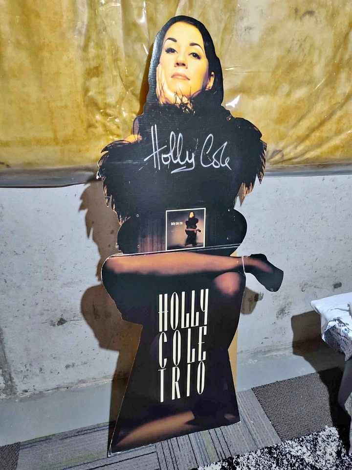 HMV Holly Cole Trio CD Debut cardboard Standee autographed. Good condition foot has been taped as broken & plastic CD holder missing. Pickup location Oshawa. Size: 5..5 ft x 3ft
