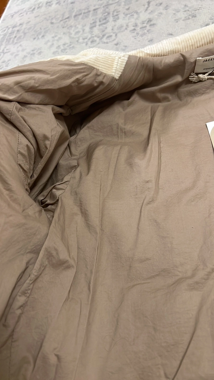Selling a JR Jacket! This cozy jacket is in a lovely cream colour and features a stylish corduroy texture. It's perfect for adding a touch of warmth and fashion to your outfits. A great addition to your wardrobe for those cooler days!