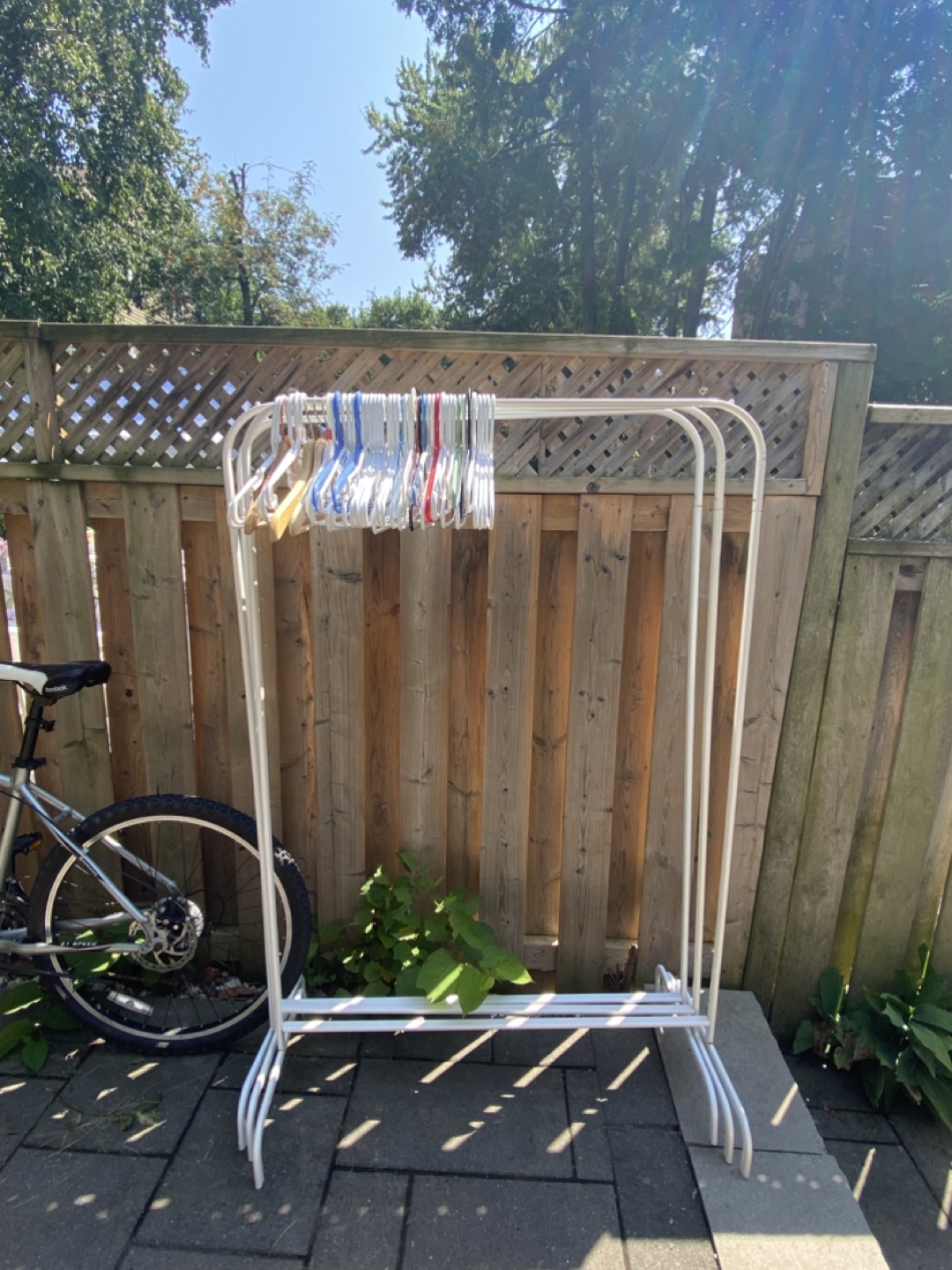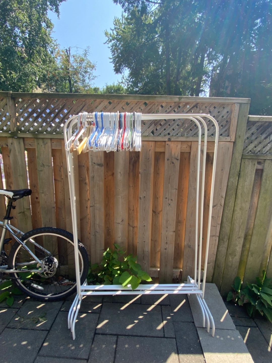 Selling 3 white metal clothing rack. Some wear and tear but still in great shape and ready to hold your clothes! Perfect for adding extra hanging space in a small apartment or closet.