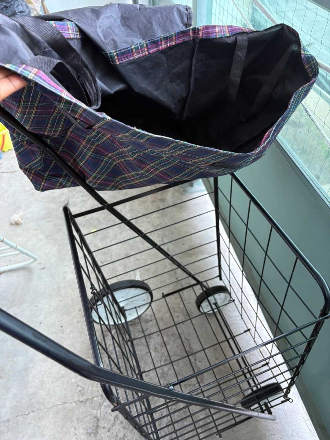 Selling a handy shopping cart with a plaid bag! Perfect for trips to the grocery store or farmers market. The bag is spacious and the cart is easy to manoeuvre.