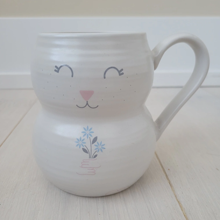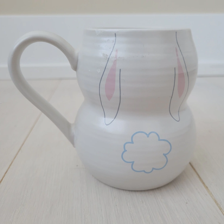Super cute bunny mug! It's a ceramic mug with a sweet bunny face on the front and a little bunny tail on the back. Perfect for your morning coffee or tea! Never used, new bunny mug! Pick-up at Bayview and Sheppard only.