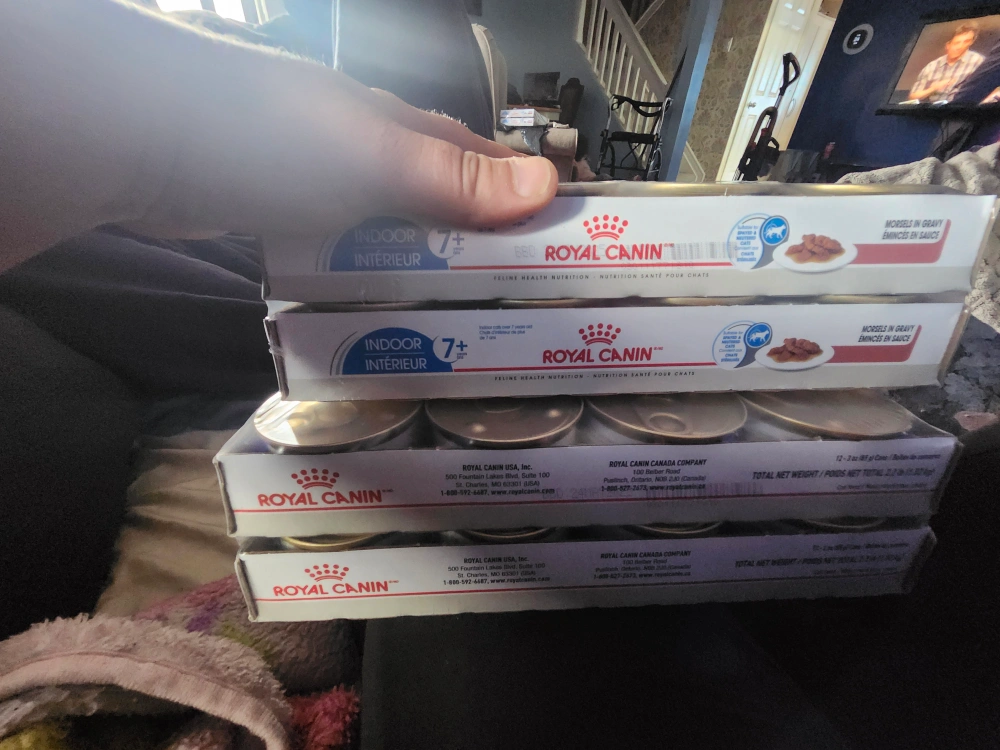 18Selling a stack of Royal Canin Indoor 7+ cat food! These are morsels in gravy, perfect for your feline friend aged 7 and up. Keep your kitty happy and healthy! I have 5 rows of these 10 dollars for all 5