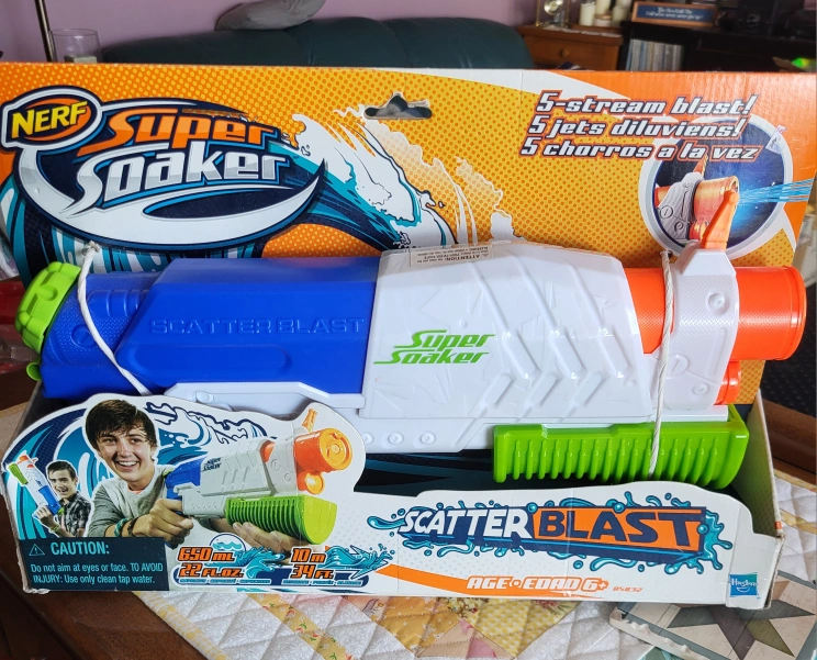 Selling a brand new Nerf Super Soaker Scatter Blast water gun, still in its original packaging! Get ready for some super-wet fun with its 5-stream blast. It holds 650 mL of water and can shoot up to 10 meters. Perfect for kids aged 6 and up!
