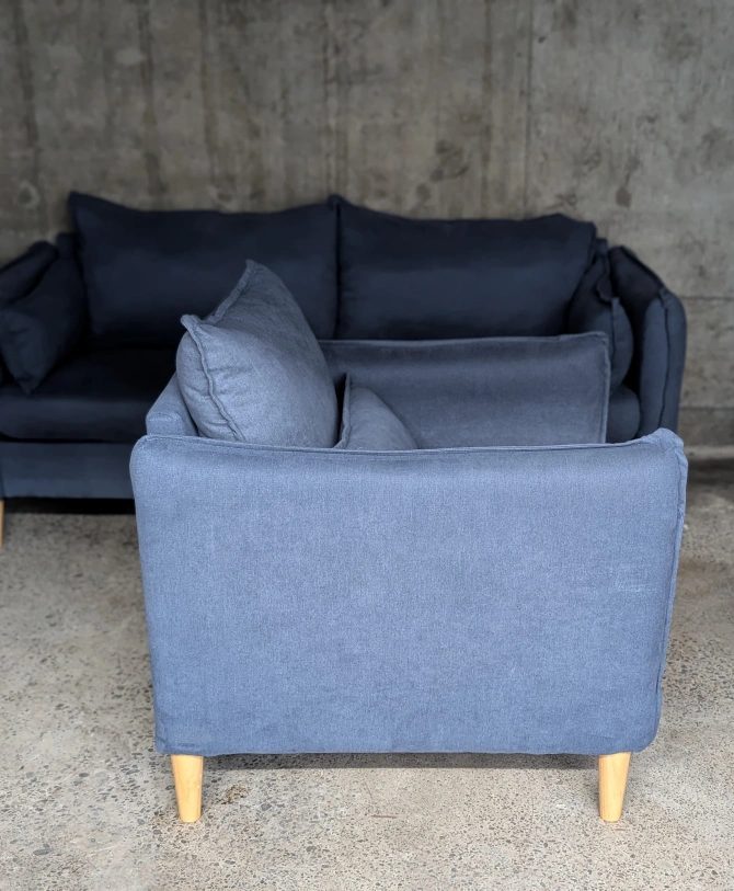 78Structube sofa and chair set .In excellent condition (only used for staging) Sofa and chair both can come apart for easy transportation which makes it super convenient to fit in smaller ,more challenging places such as lofts and basements.easy to take apart and put together . Pick up in Whitby