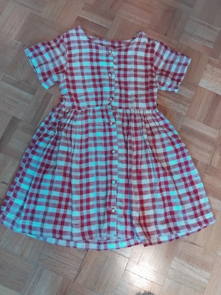 A cute red and white plaid dress! It's in great shape and ready for a new home. Perfect for summer days or layering in the fall. size 7