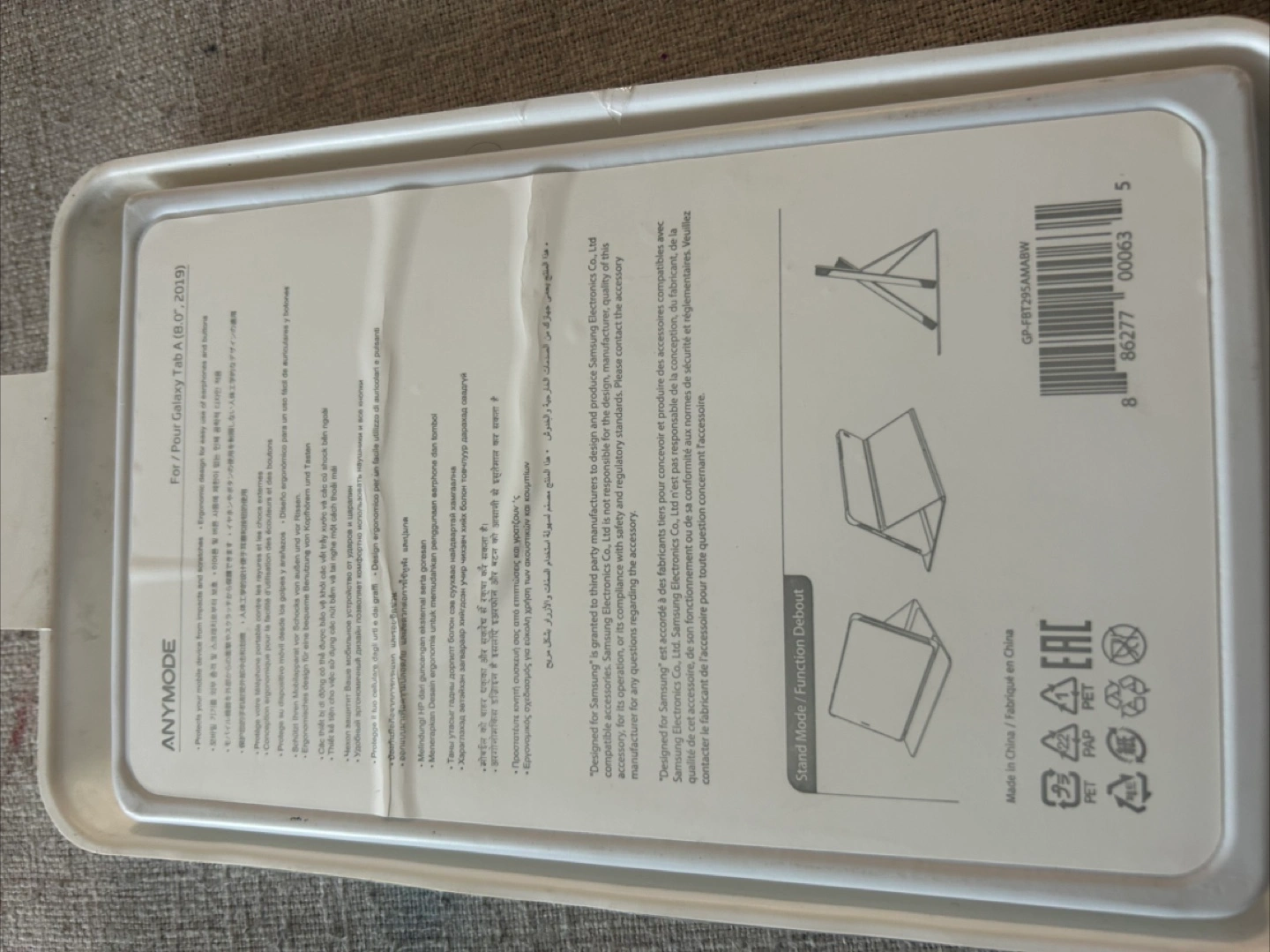 Selling a book cover for a Samsung Galaxy Tab A (8.0", 2019). It's a durable standing book cover. Protects your mobile device, design for ease of access and features.