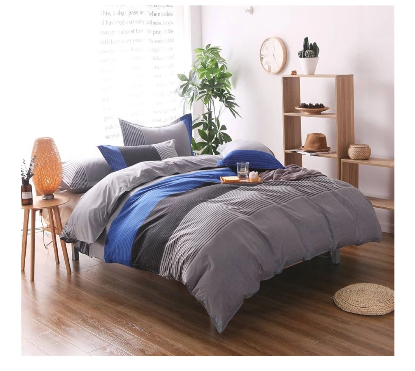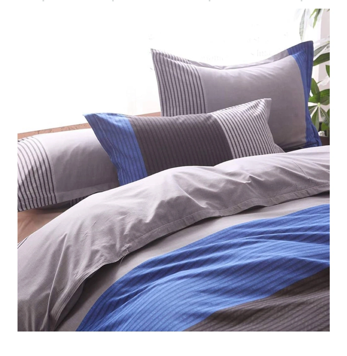 Looking to refresh your bedroom? I'm selling a Tenghe Stripe Colorblock 3-piece Duvet Cover Set in a lovely blue stripe pattern. It's a queen size and made of soft, brushed microfiber, so it's super comfy! Perfect for adding a touch of style to your sleep space