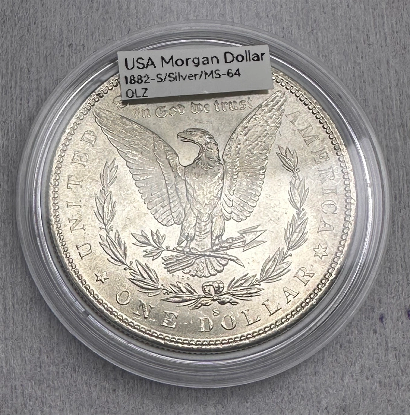 Selling an authentic USA Morgan Silver Dollar, dated 1882-S. It's in great condition!