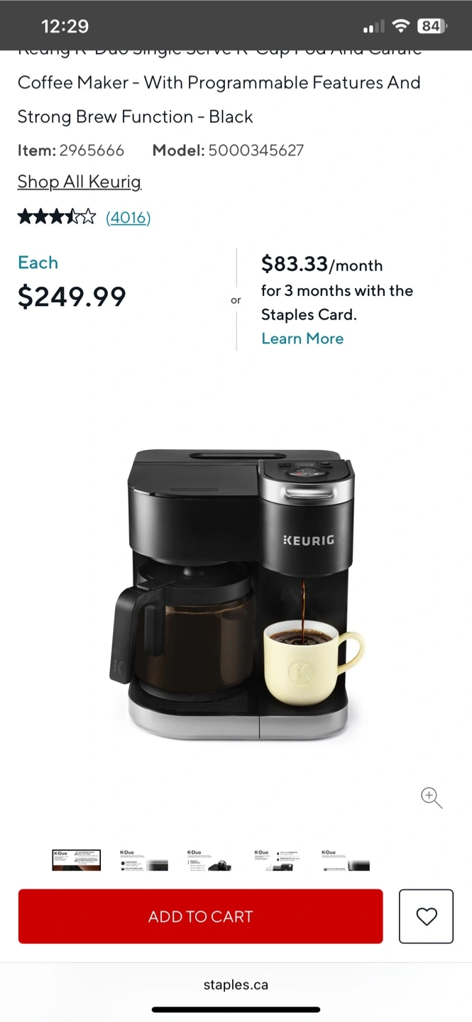 Selling a brand new Keurig K-Duo coffee maker in black! It's in great shape and ready to brew your favourite coffee. Only used it once just to try it out. It works great I just don’t need a big coffee machine.