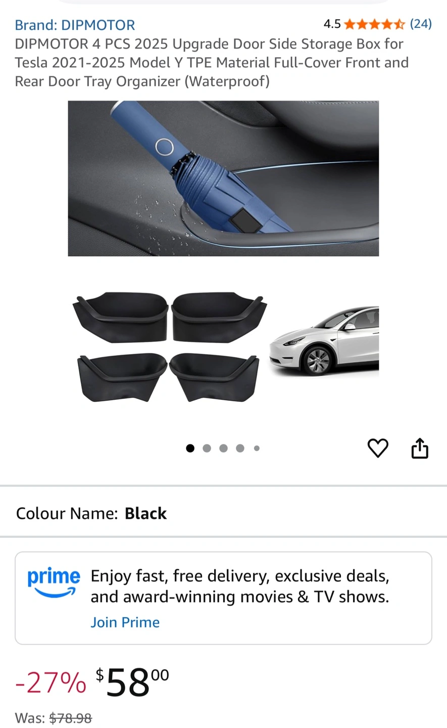 43DIPMOTOR 4 PCS 2025 Upgrade Door Side Storage Box for Tesla 2021-2025 Model Y TPE Material Full-Cover Front and Rear Door Tray Organizer (Waterproof) Retails: $78.98 sale $58 + tax Asking: $50 Brand new never used In box and packaging opened for photos Pick Up Waterdown Area