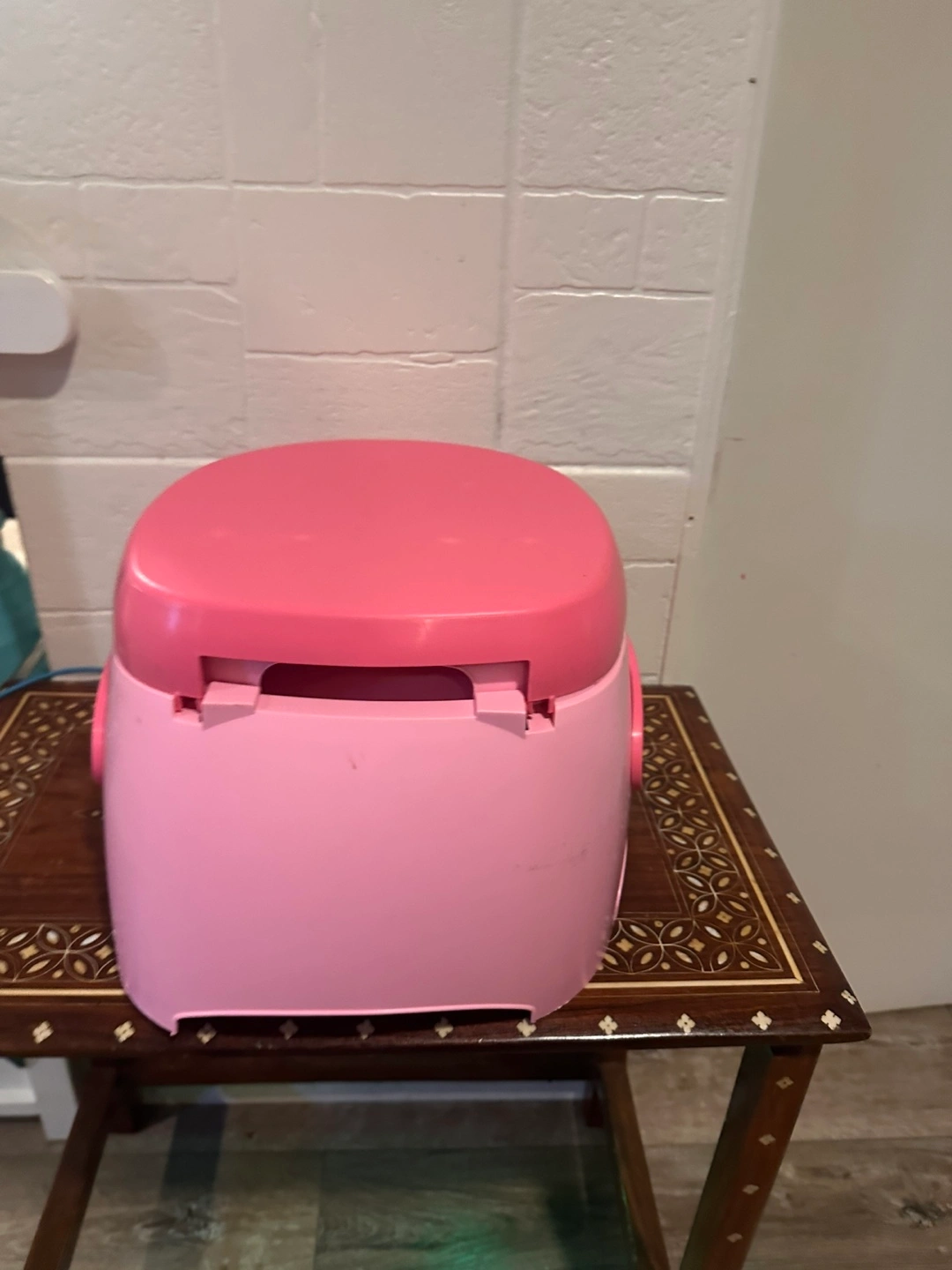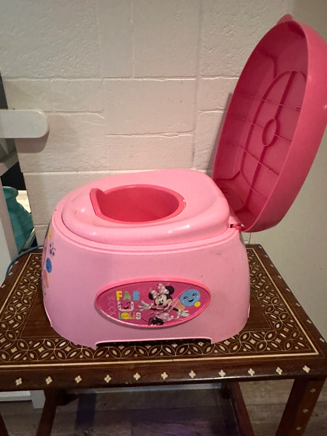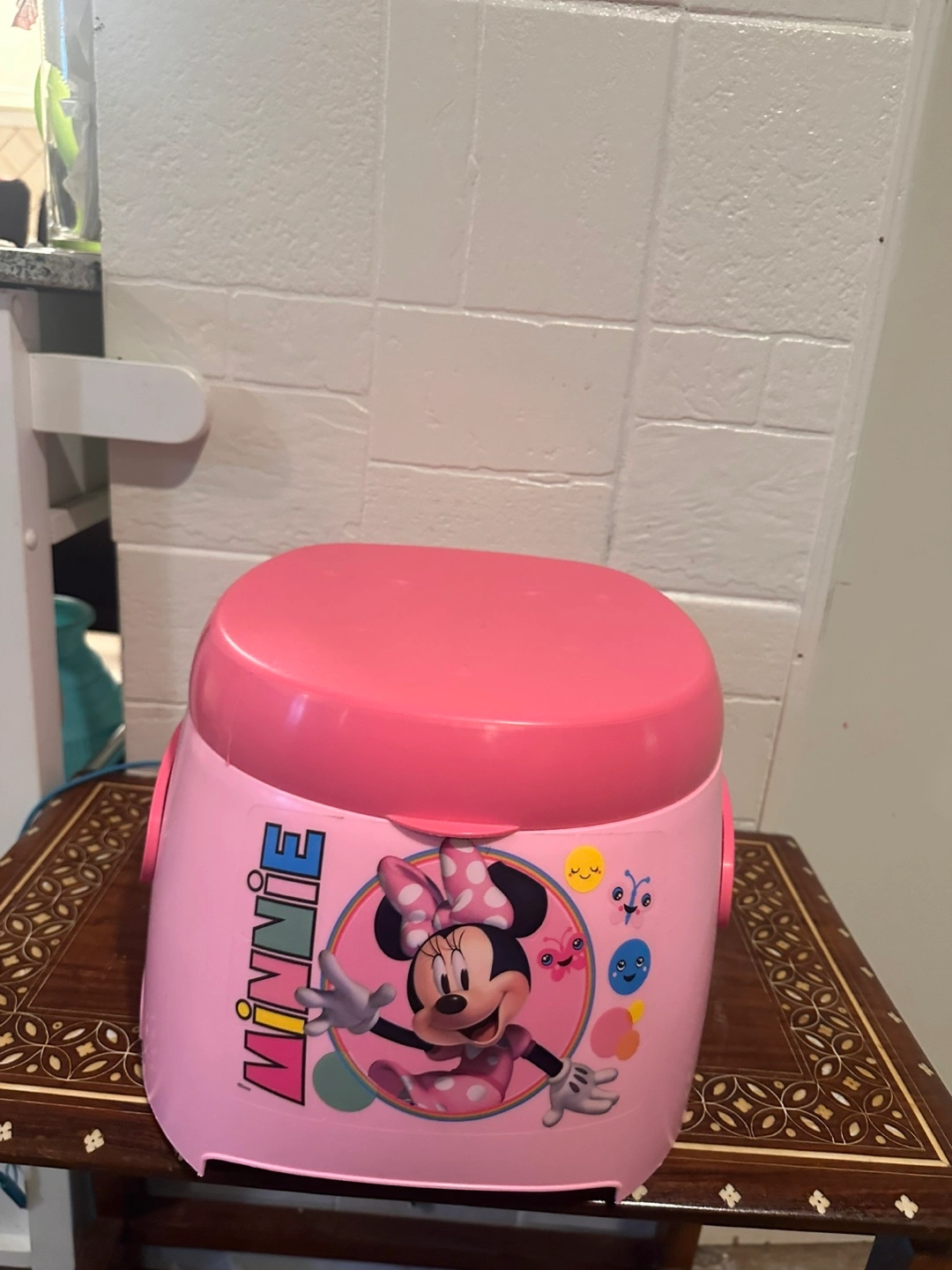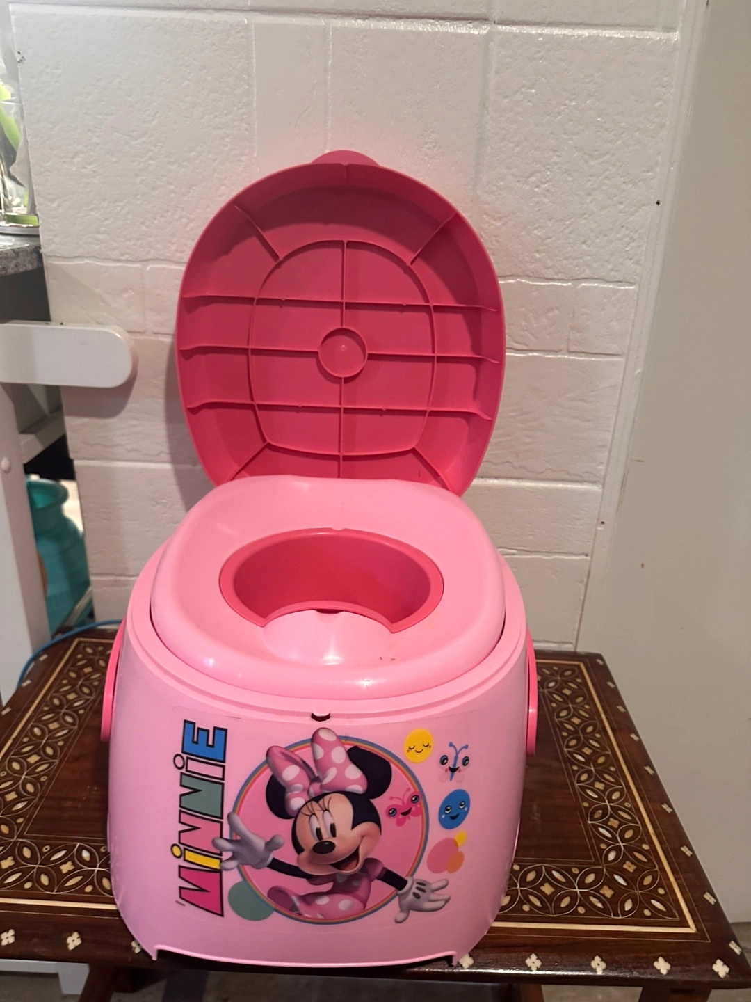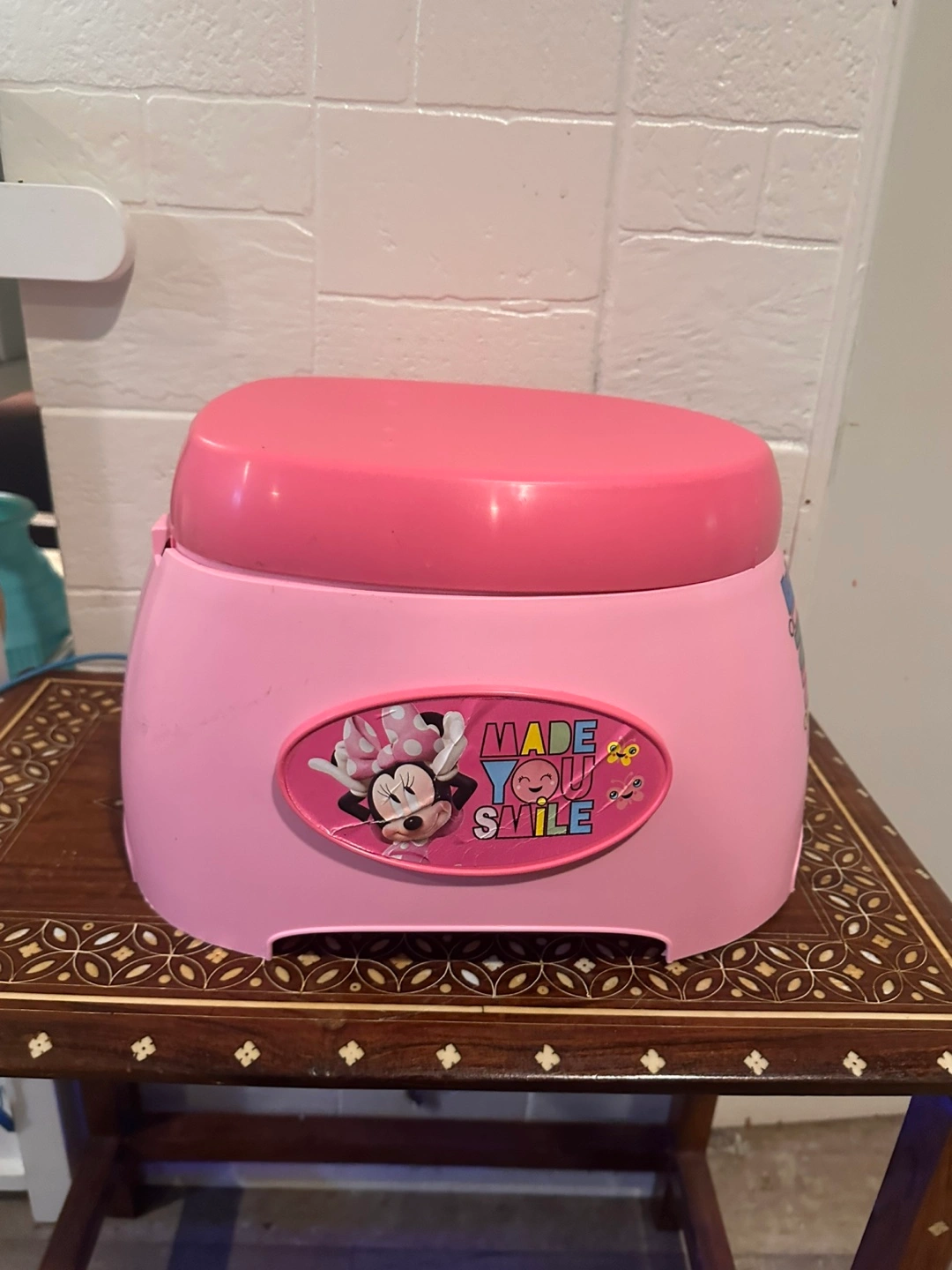 539A cute pink potty training seat featuring Minnie Mouse! It's in good used condition and ready for its next little user. Perfect for making potty training a bit more fun!