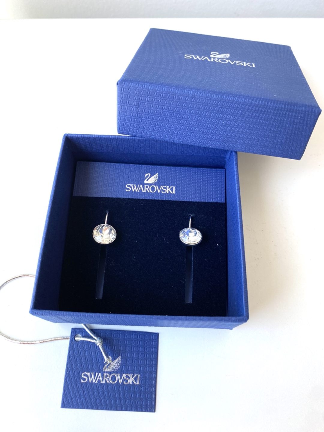Selling a pair of Swarovski crystal earrings. They are brand new and come in their original box. Perfect for adding a touch of sparkle!