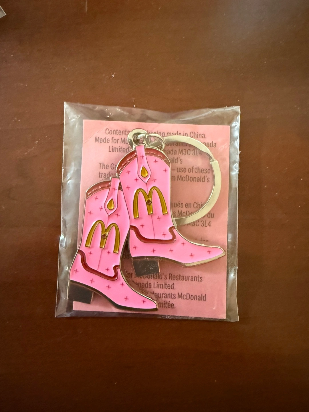 Here's a cute pink cowboy boot keychain from McDonald's! It's still in its original packaging, so it's in great condition and ready for a new home