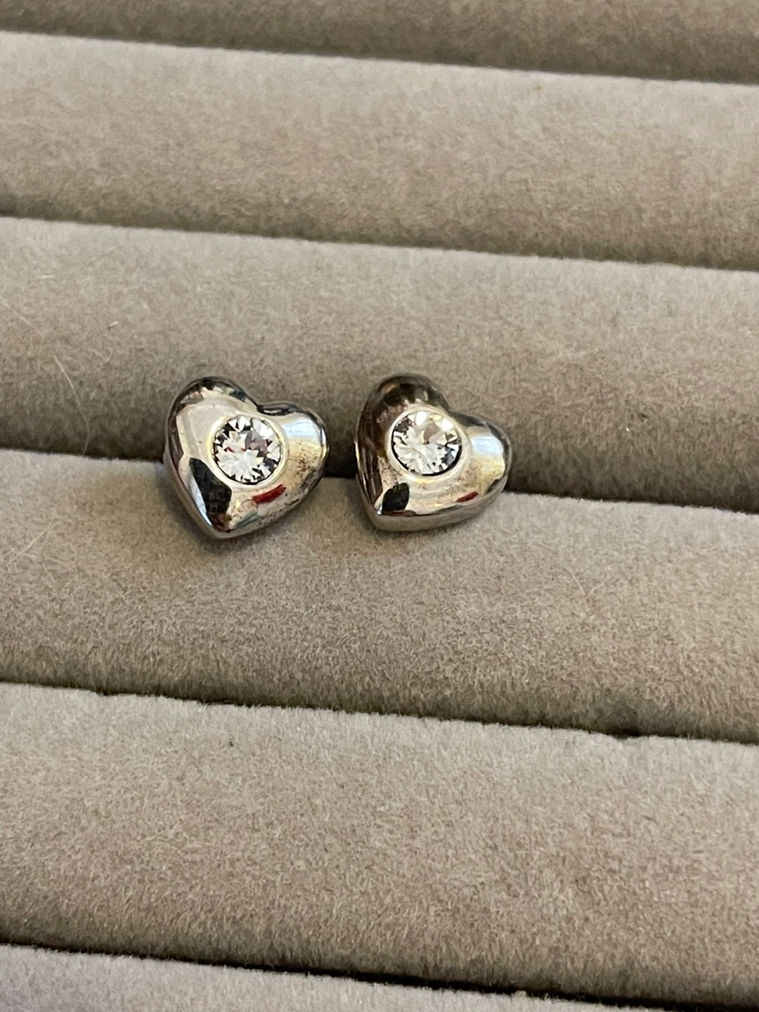 Cute heart-shaped stud earrings with a small stone accent. Perfect for everyday wear!