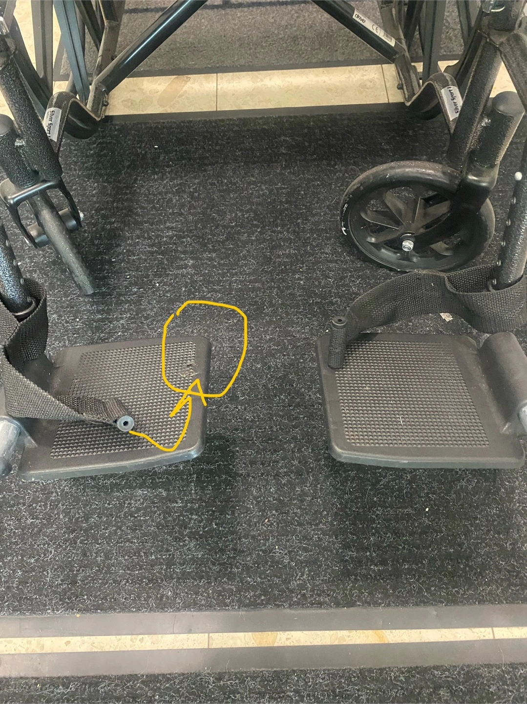 One of the footrest screws is removed(as shown in the yellow circle in one of the pictures) needs a bit of repair; perfect to use regardless.