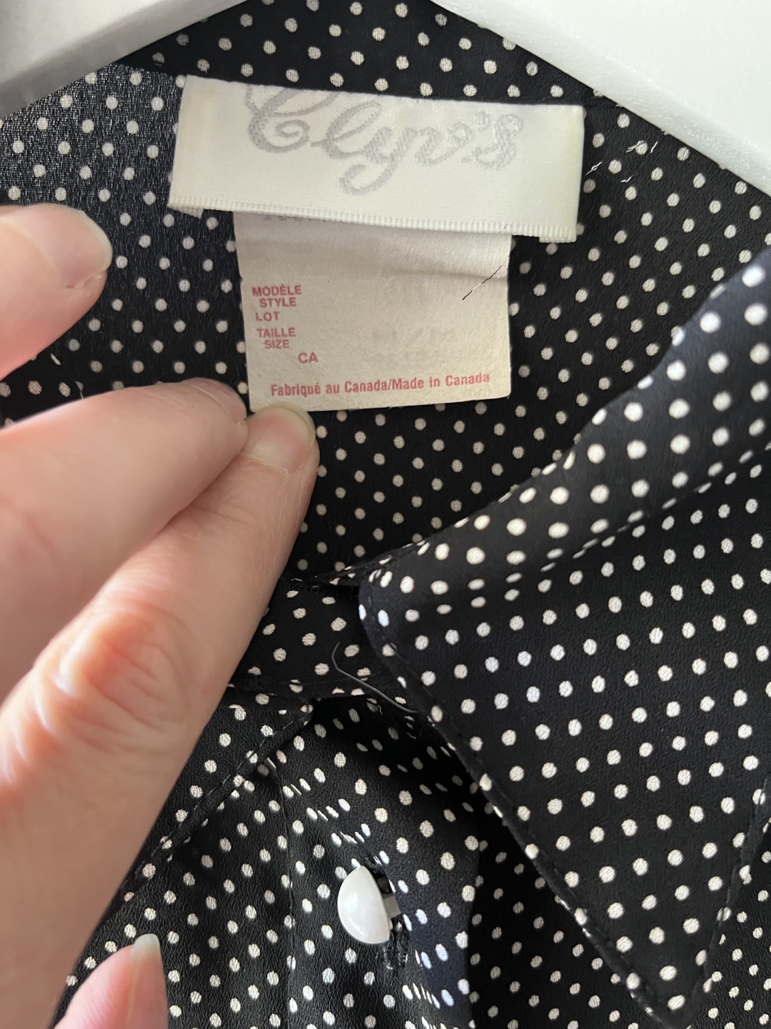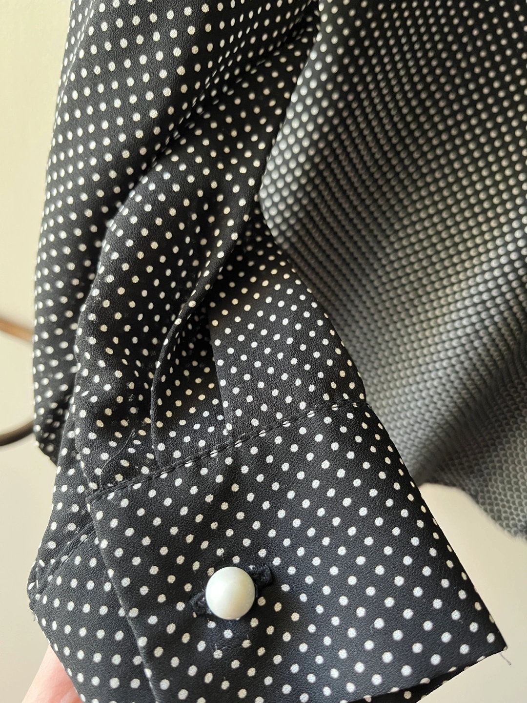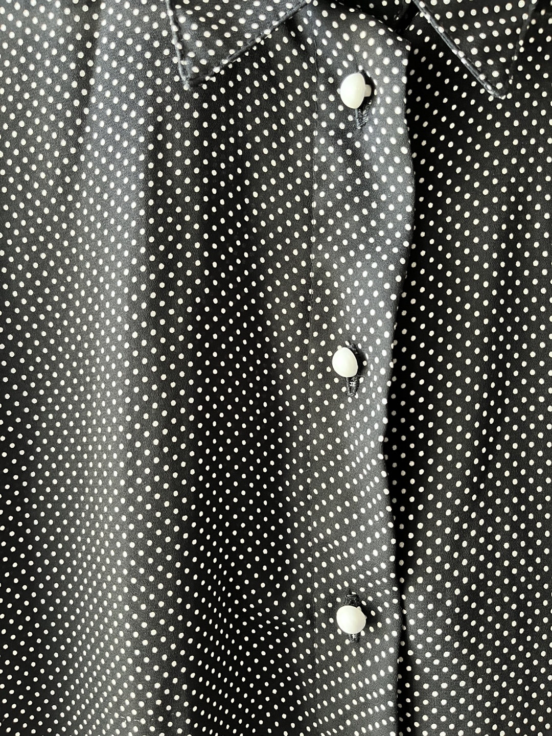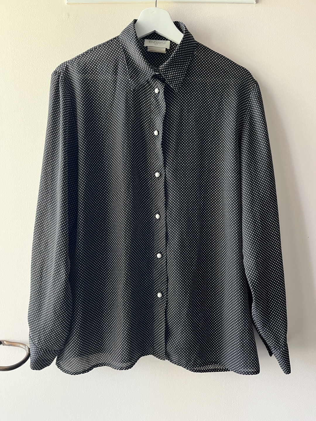 Cute polka dot blouse with pearl buttons. Size medium. Perfect for adding a touch of vintage charm to your wardrobe.