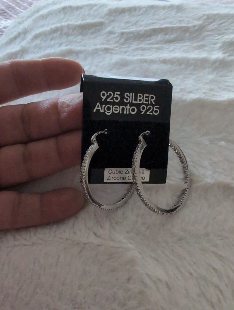 Selling a pair of beautiful 925 silver hoop earrings! They feature cubic zirconia for a sparkly touch. Perfect for dressing up or everyday wear!