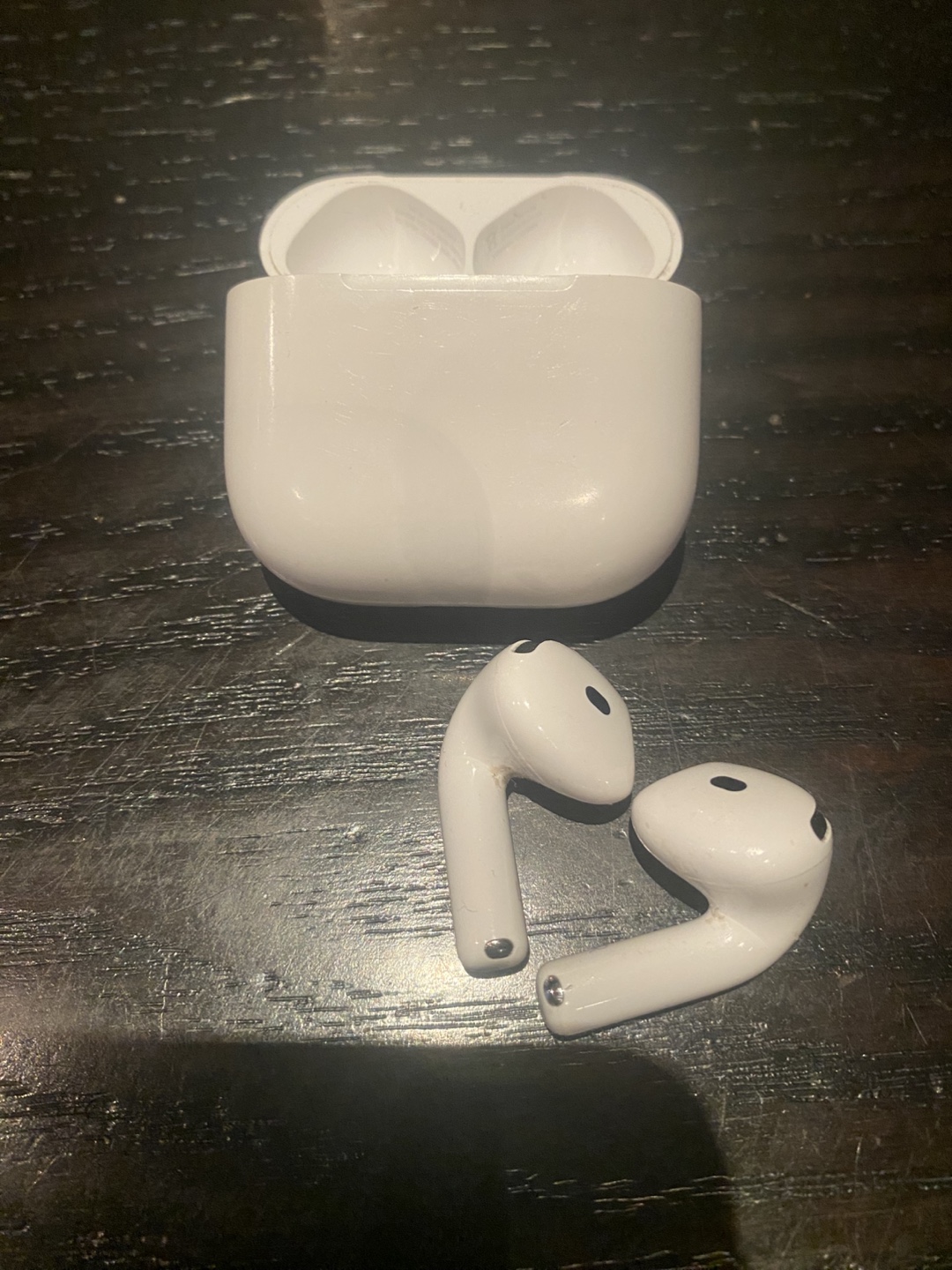 Selling a pair of authentic Apple AirPods (4th generation). They're in great shape and fully functioning.