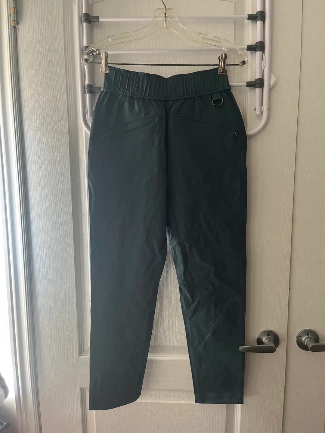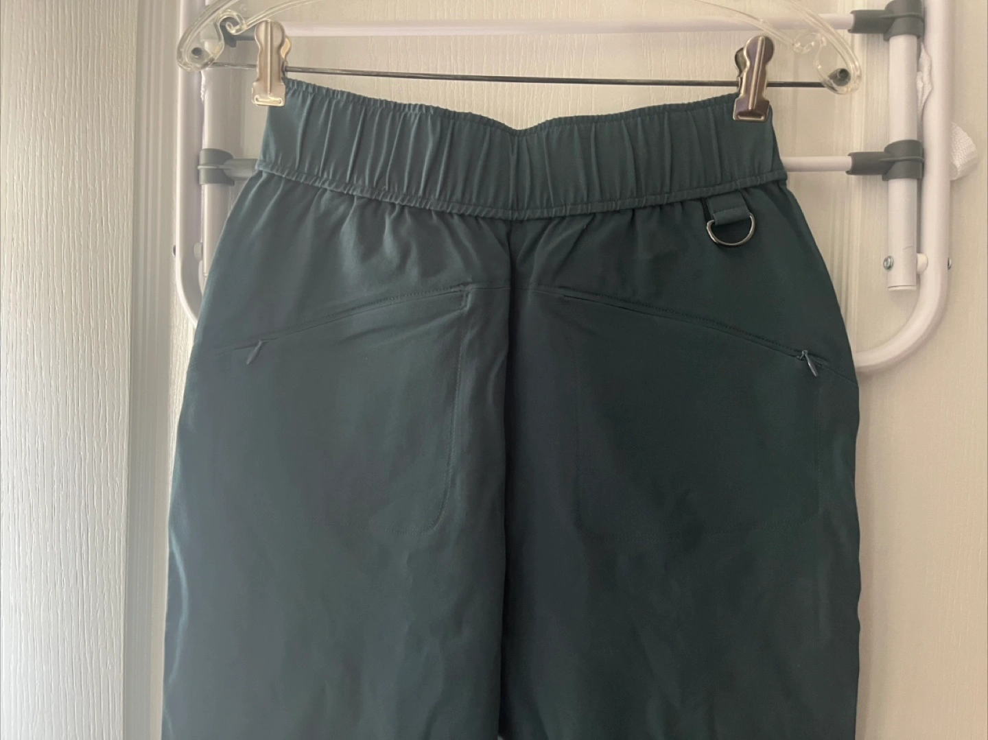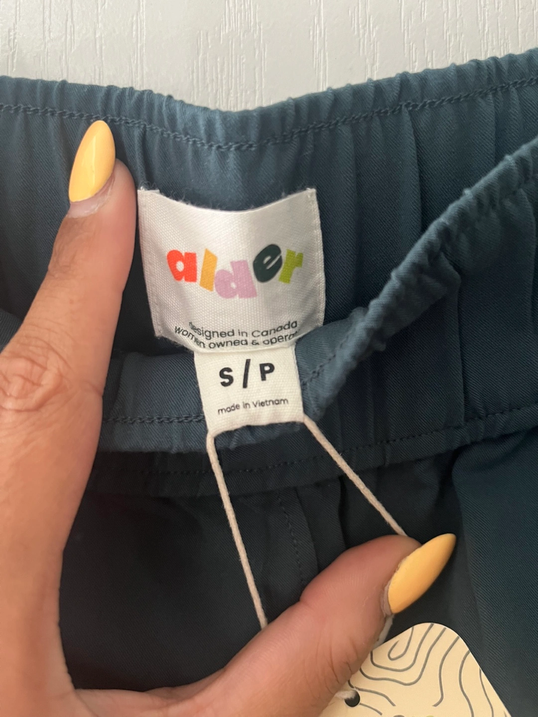 These Alder Open Air Pants are in Blue Spruce , petite size small with a 26.5" inseam. They sat in my closet for a while and unfortunately aren’t my size anymore . Looking to give them a good home :)
