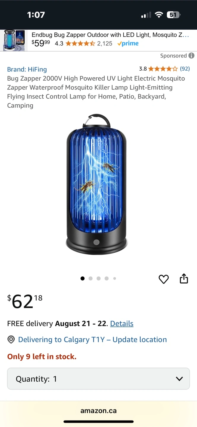 Keep those pesky mosquitoes away with this HiFing Bug Zapper! It uses a 2000V high powered UV light to attract and kill mosquitoes and other flying insects.