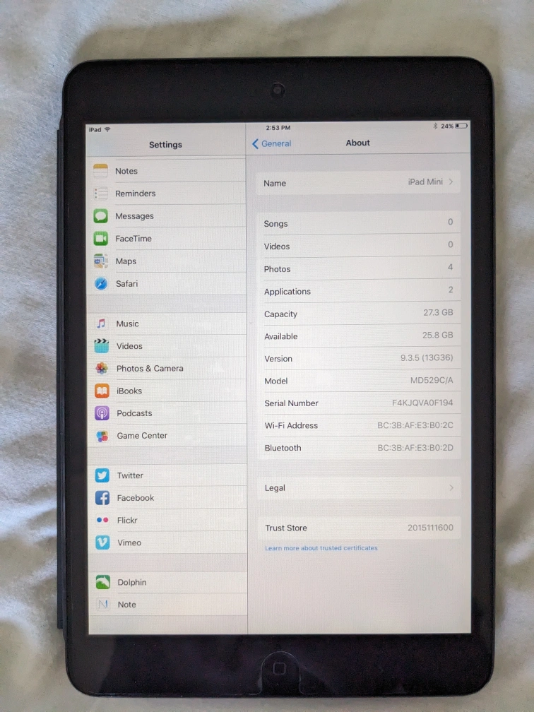 Selling an iPad Mini 1st gen. It's in great condition, a couple of scuffs on the back.