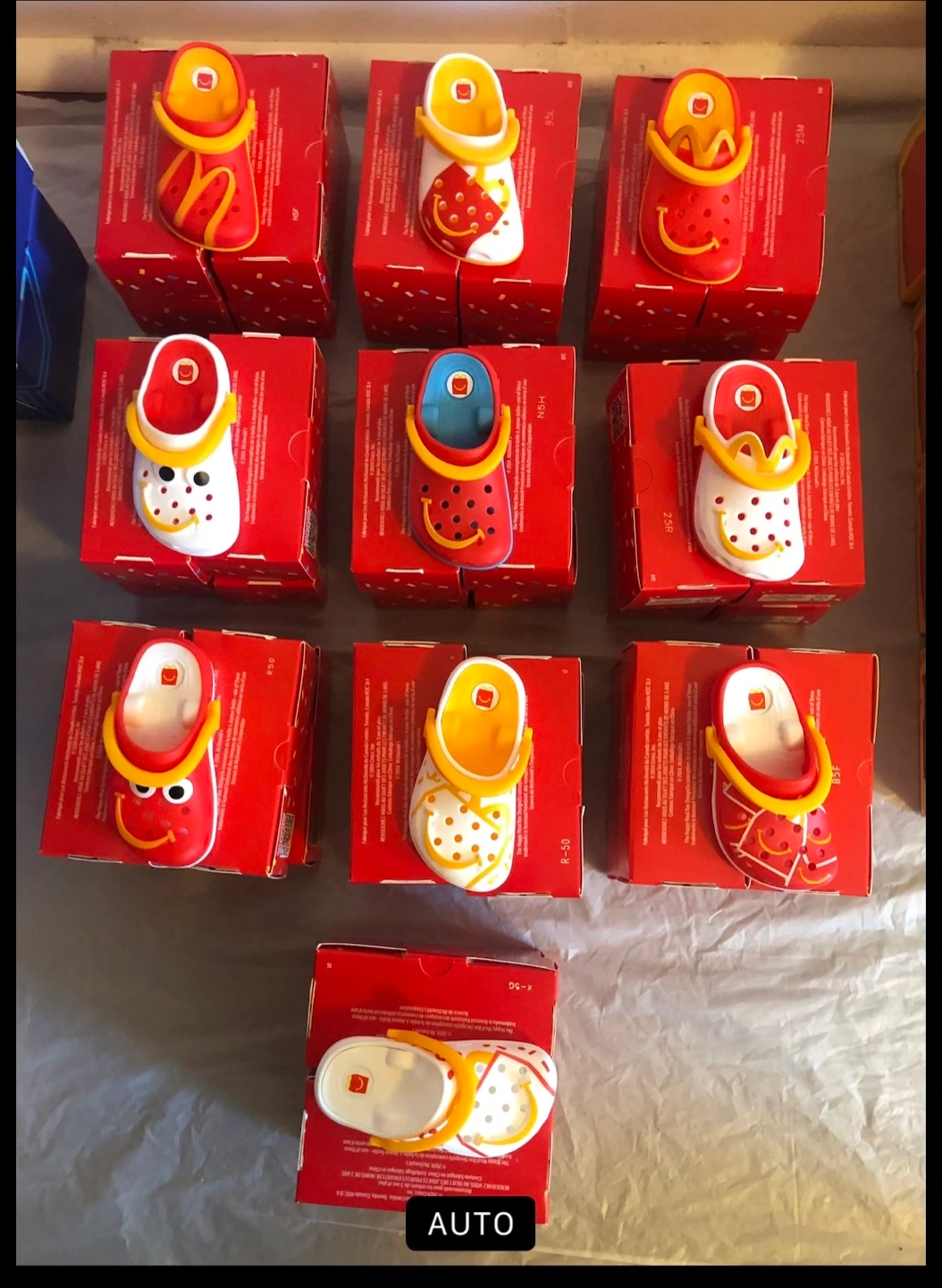 I have a collection of McDonald's Crocs charms, each still sealed in its original box! These are the perfect way to add a playful touch to your Crocs. Each charm features a unique McDonald's theme, and they're all brand new. Get yours today!