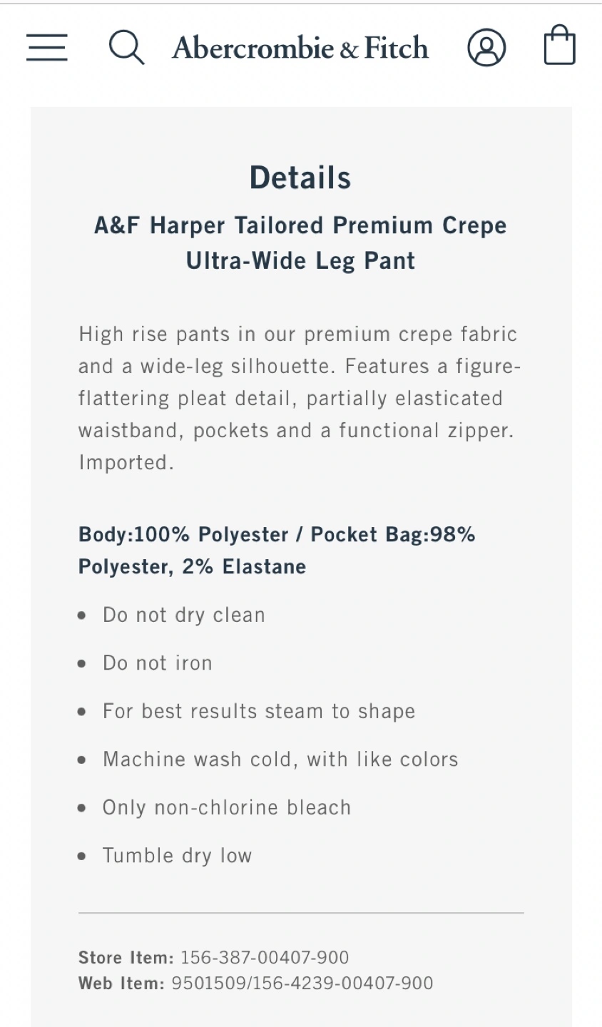 A&F Harper Tailored Premium Crepe Ultra-Wide Leg Pant