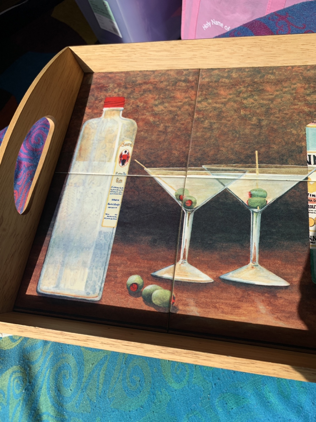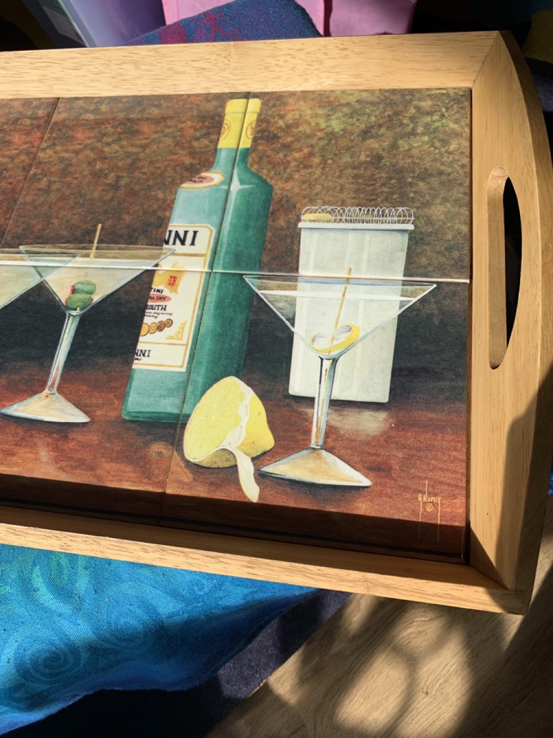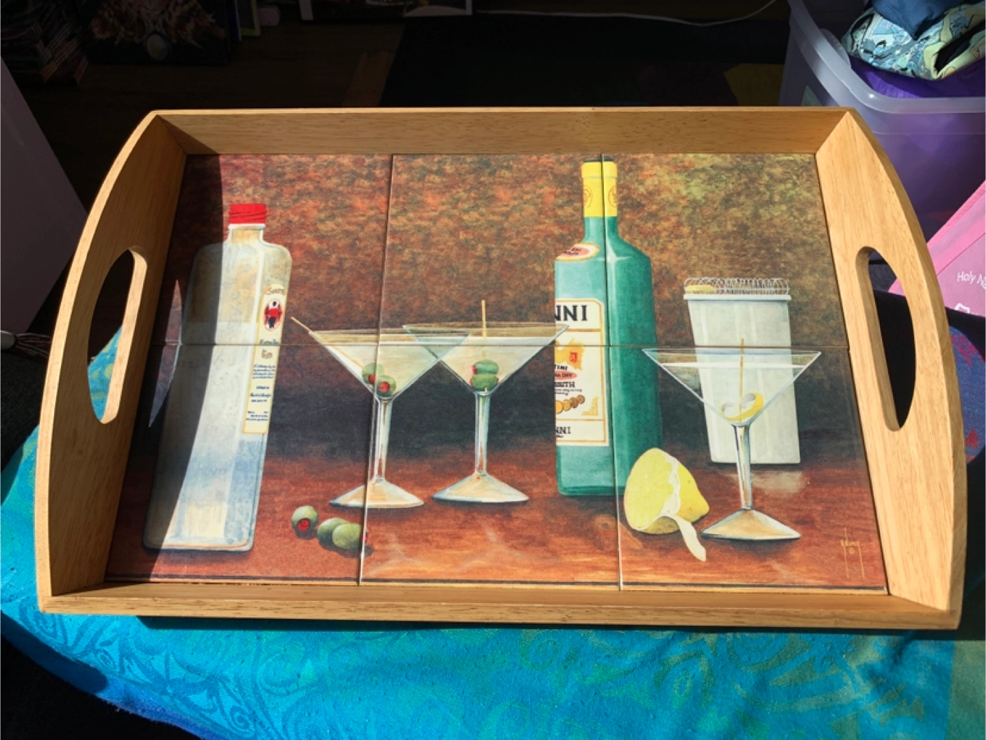 Wooden Serving Tray with Martini Art
